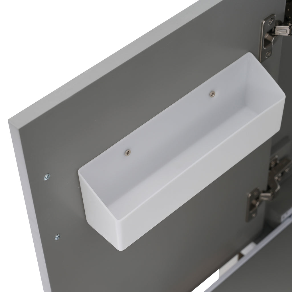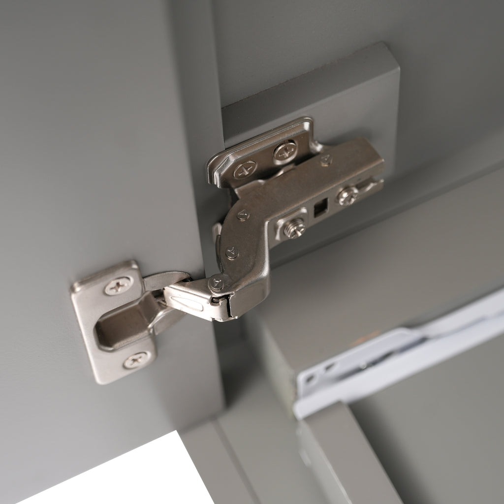 - Modern Elegance with a Stylish Look:A sleek gray cabinet paired with a white basin and silver handles for a modern, elegant appearance.