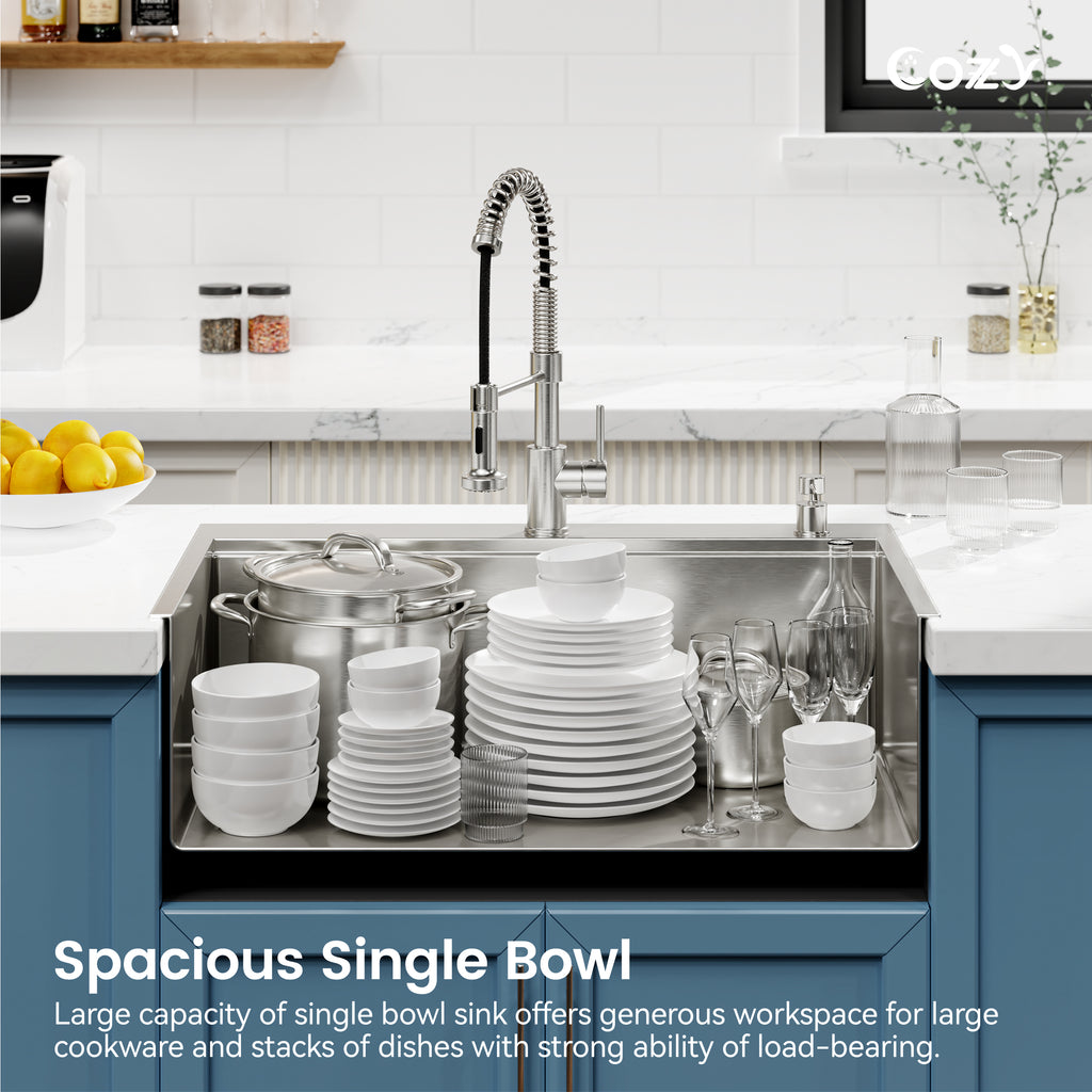 - HANDCRAFTED KITCHEN SINKS: Features with HANDMADE craftsmanship, made of 18-gauge, 304-grade brushed stainless steel, the thickness is uniform and the texture is better. It will not cause the sink to be too thin like stretched sinks. Longer service life. A brushed satin finish tends to hide water spots. The flawless, smooth texture and golden ratio R10 rounded corners make it more aesthetic, and functional.