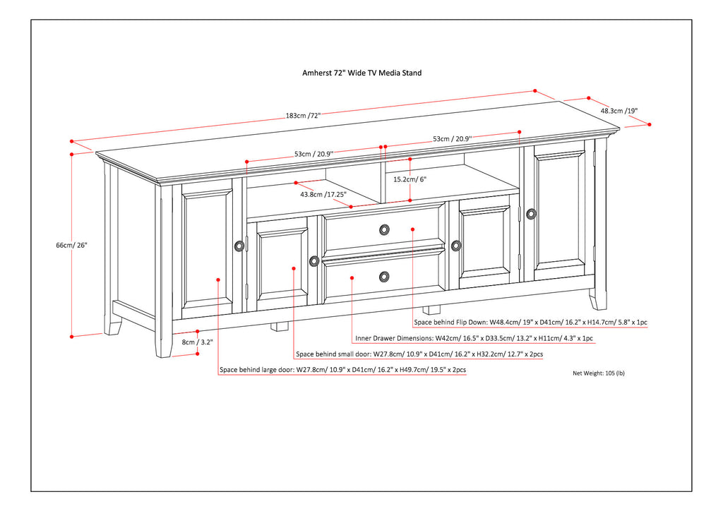- Cord management cut-outs for easy installation of TV and media components and is perfect for TVs up to 80 inches
