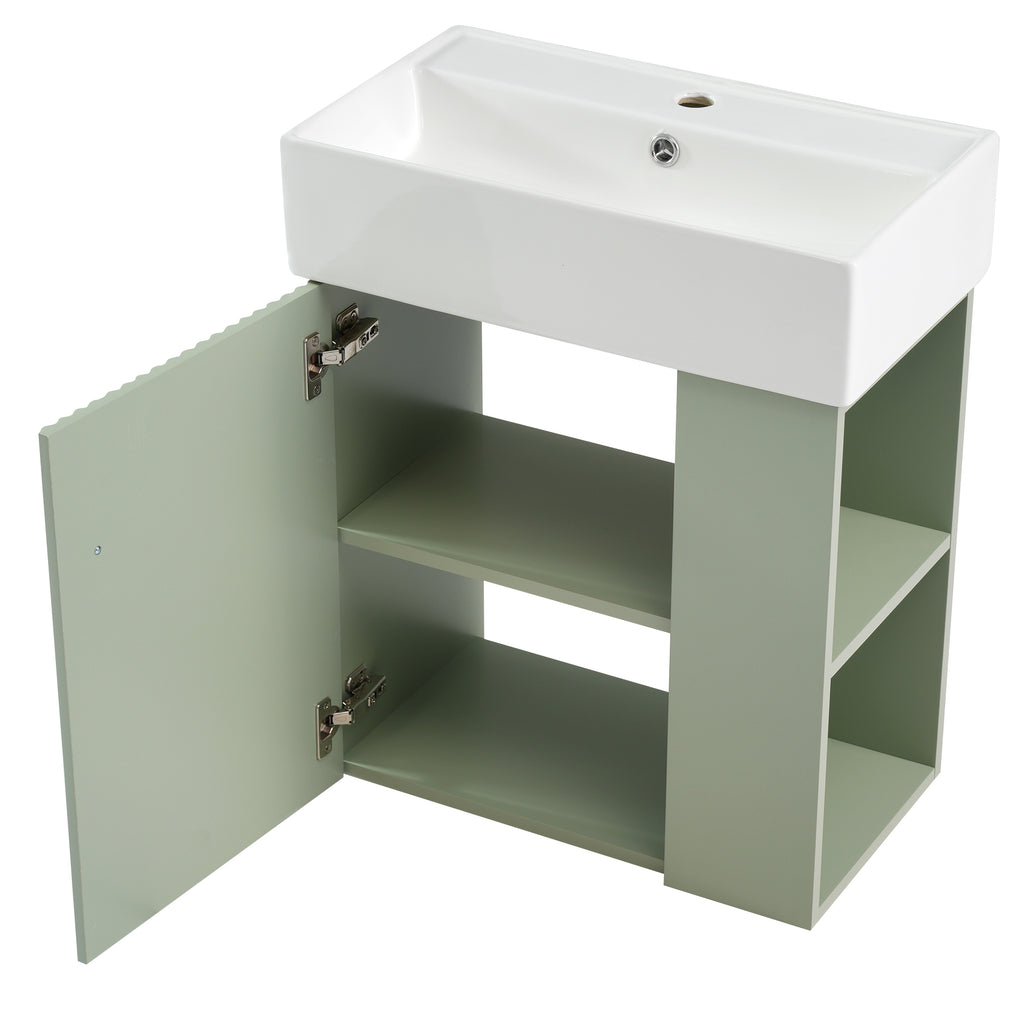 Constructed with a premium ceramic basin and equipped with an overflow hole, this cabinet guarantees both durability and safety in use. The compact dimensions of 21.6*12.2*26.4 inches make it adaptable to bathrooms of various sizes.