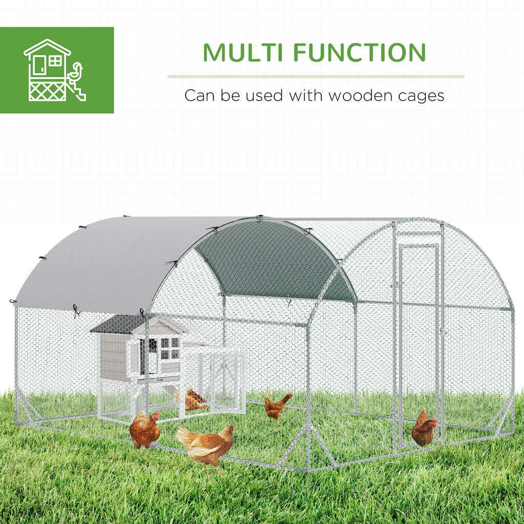 - Shady Roof: The shady roof with spring button clips helps your pet stay cool in the heat while avoiding dehydration and keeping them comfortable. The coverage of this chicken cage also protects them in case of rain showers. It's made from specially treated Oxford cloth with water and UV resistance for survivability in bad weather. Offer your small pet a homier space with a place to stay roofed.