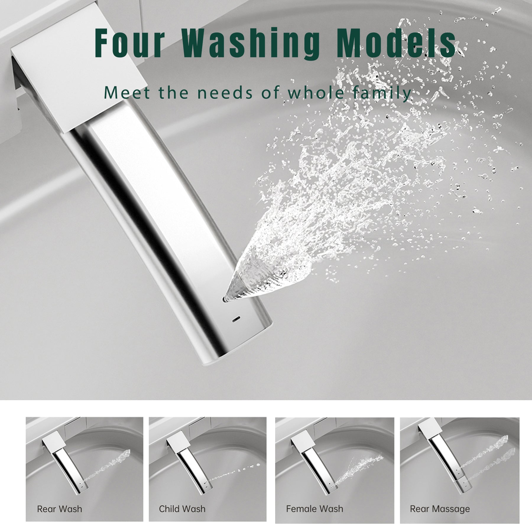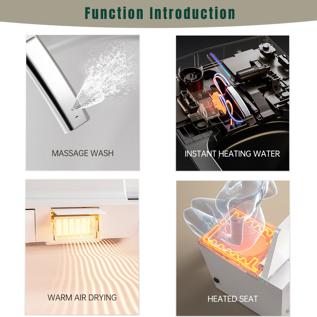 - RECTANGULAR DESIGN & MULTIPLE CLEANING FUNCTIONS: The smart toilet offers Rear Wash, Feminine Wash, Child Wash, and Massage Wash modes,bring high-end comfortable experience to all your family member.