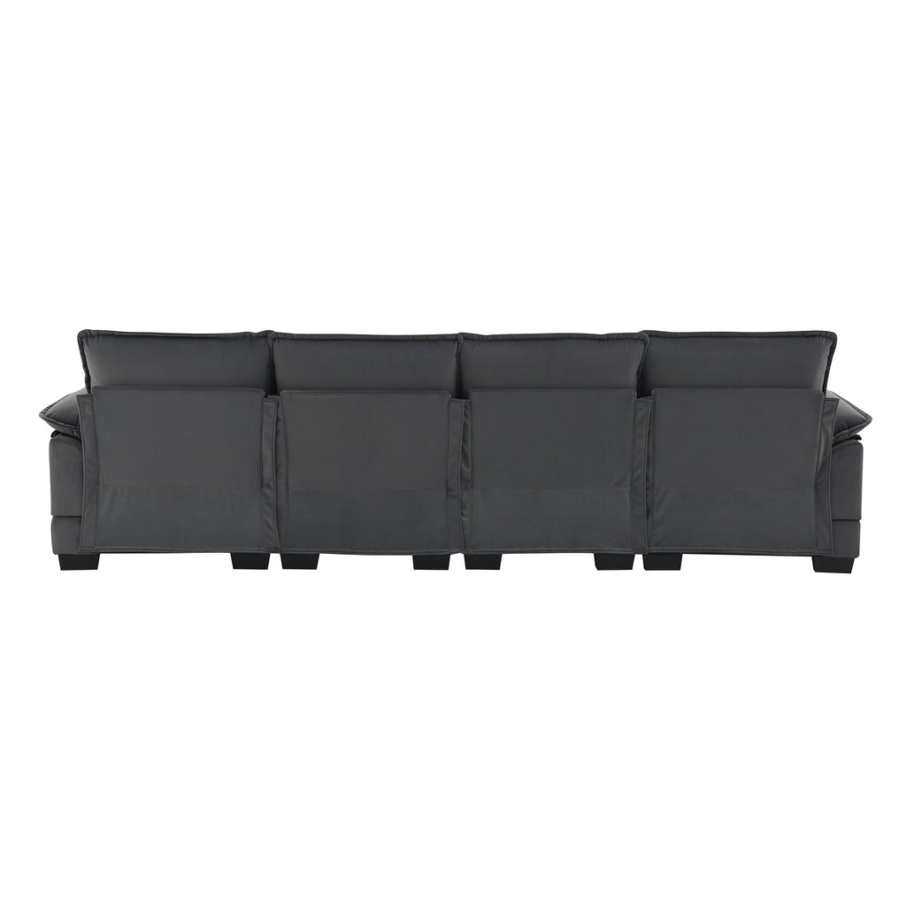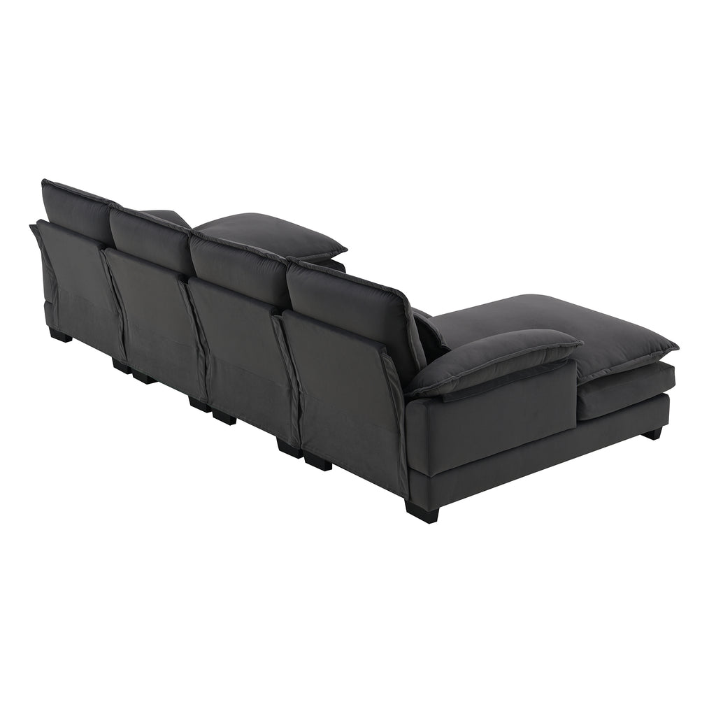 This modern sectional sofa has a classic design that will never go out of style. The upholstery and sleek lines blend perfectly to create a harmonious appearance that can suit any decor style and enhance your space. Our sofa comes with four waist pillows, providing extra support and a touch of decorative charm to your living space.