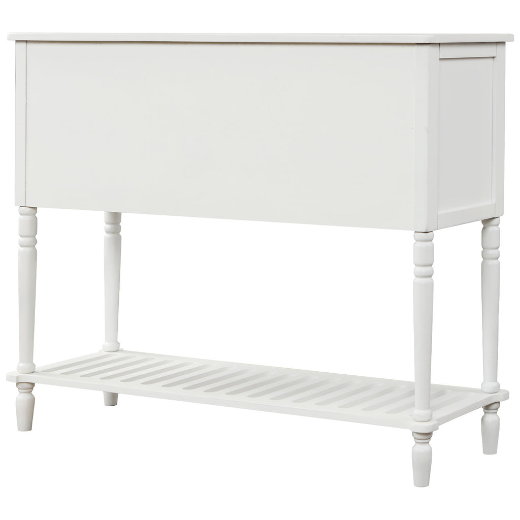 Sophisticated brass knobs add culture and elegance to this transitional console table. This piece of home furniture is designed to be a multi-functional space saver which is suitable for dining room, entrance or living room.Solid wood frames and legs and tempered glass make this cabinet stable and durable.