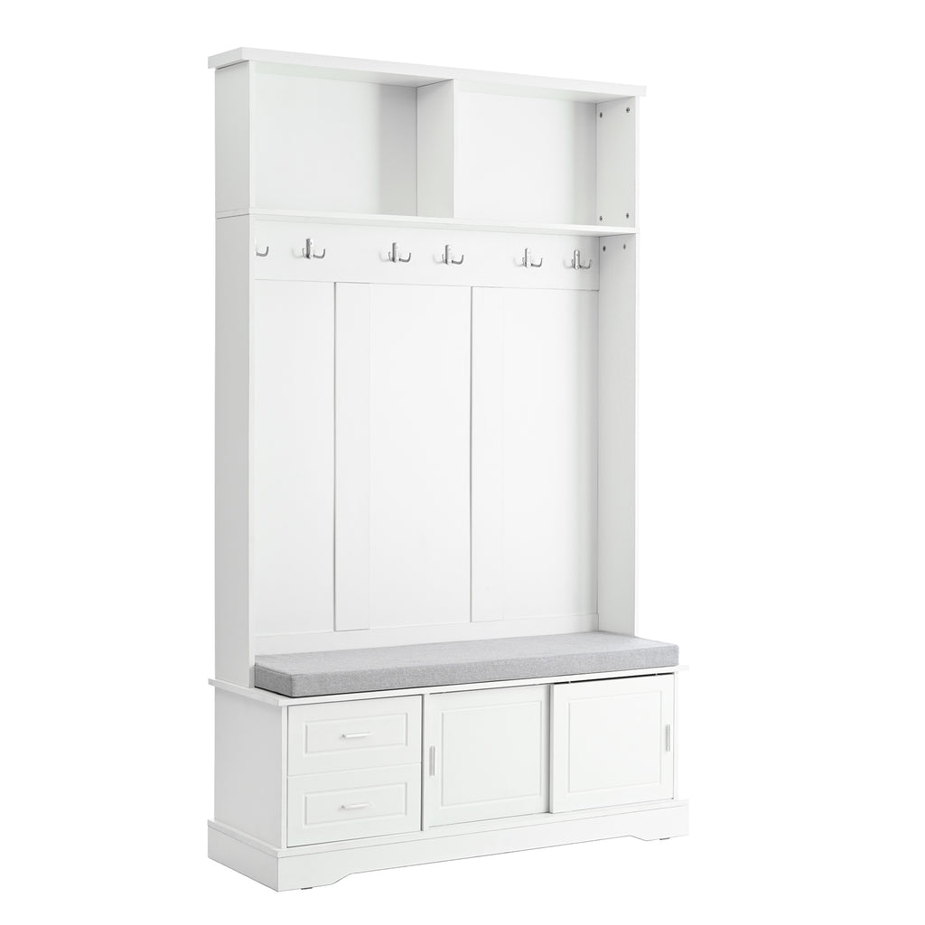 - This versatile 3-in-1 hall tree, constructed from premium board materials and robust hardware, ensures long-term use as a rack, seating bench, or shoe cabinet, all in one sleek design. Furthermore, we offer anti-tipping device to help reduce the risk of tip-over accidents, you can anchor the cabinet to the wall optionally.