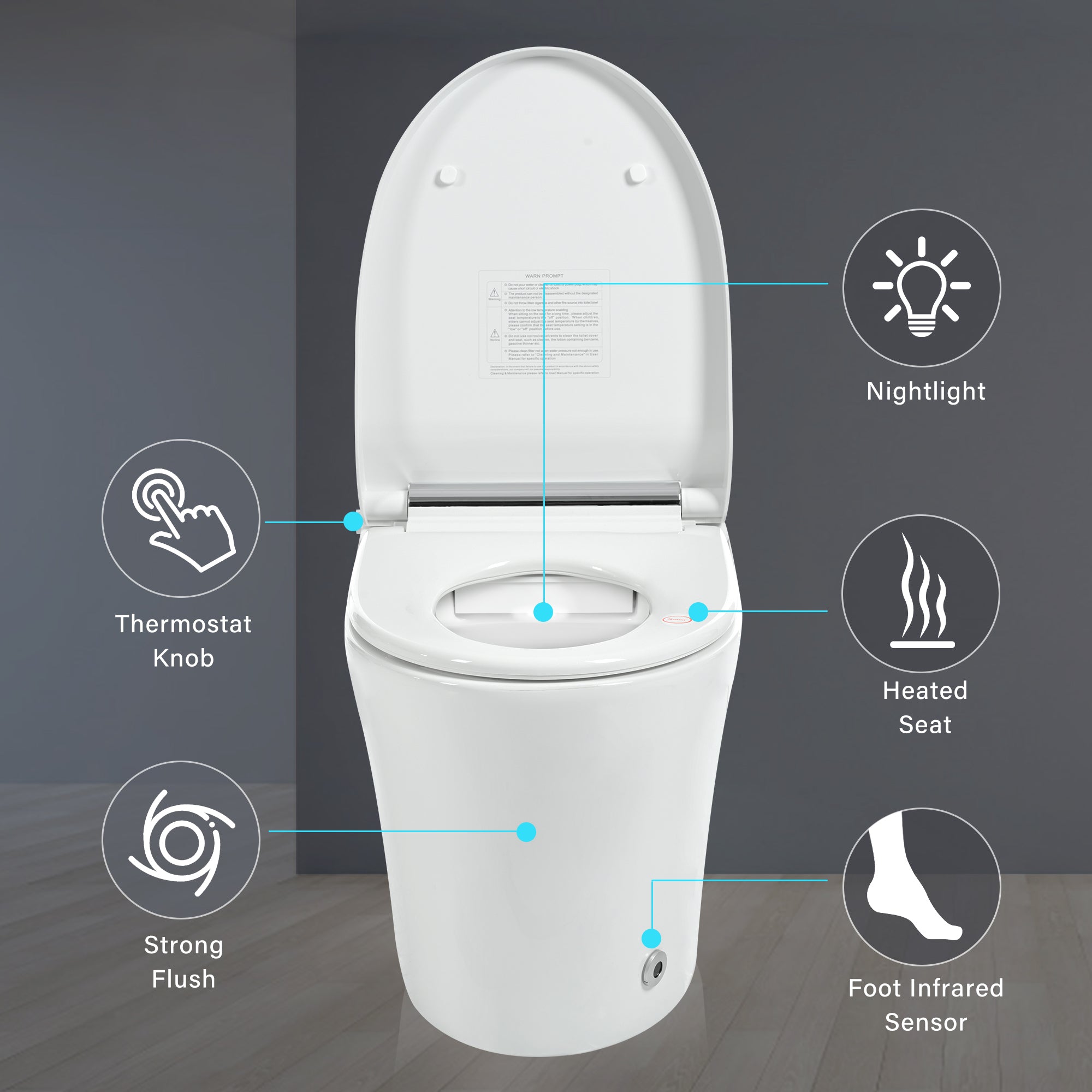 - Soft Night Light: The smart toilet including night light, Knob ambient light,providing convenient visibility during nighttime bathroom visits. Prevent midnight accidents and make your trips to toilet safer for your family.