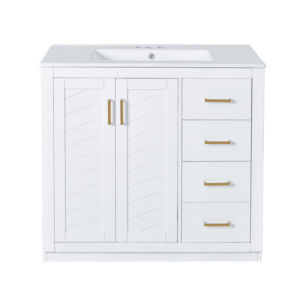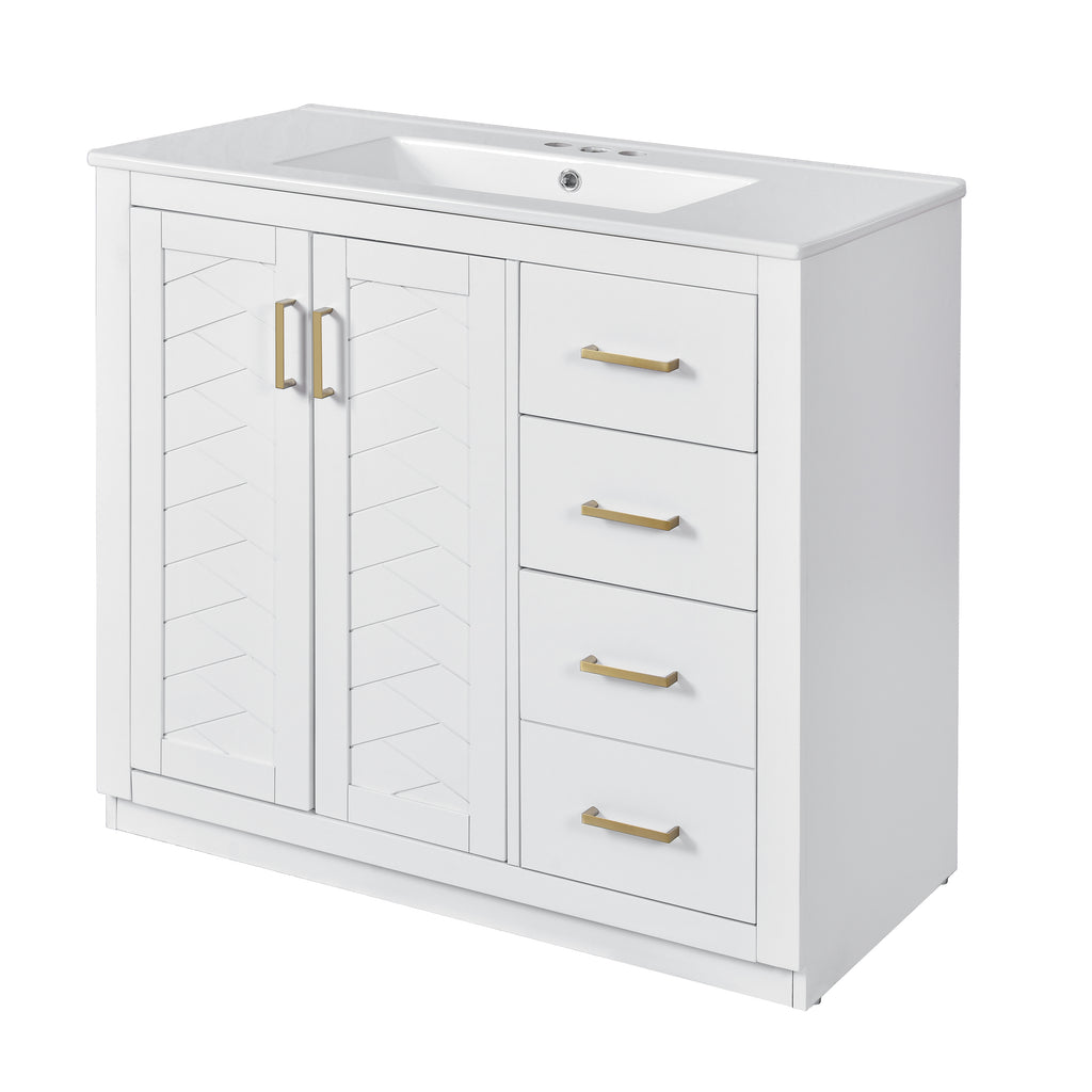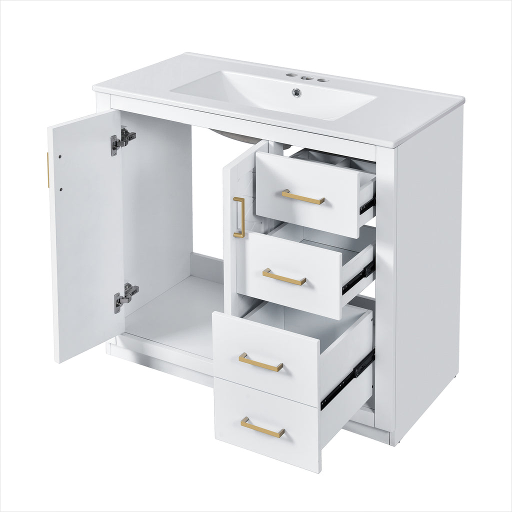 36'' Bathroom Vanity with Ceramic Sink Combo,Solid Wood Frame Bathroom Storage Cabinet