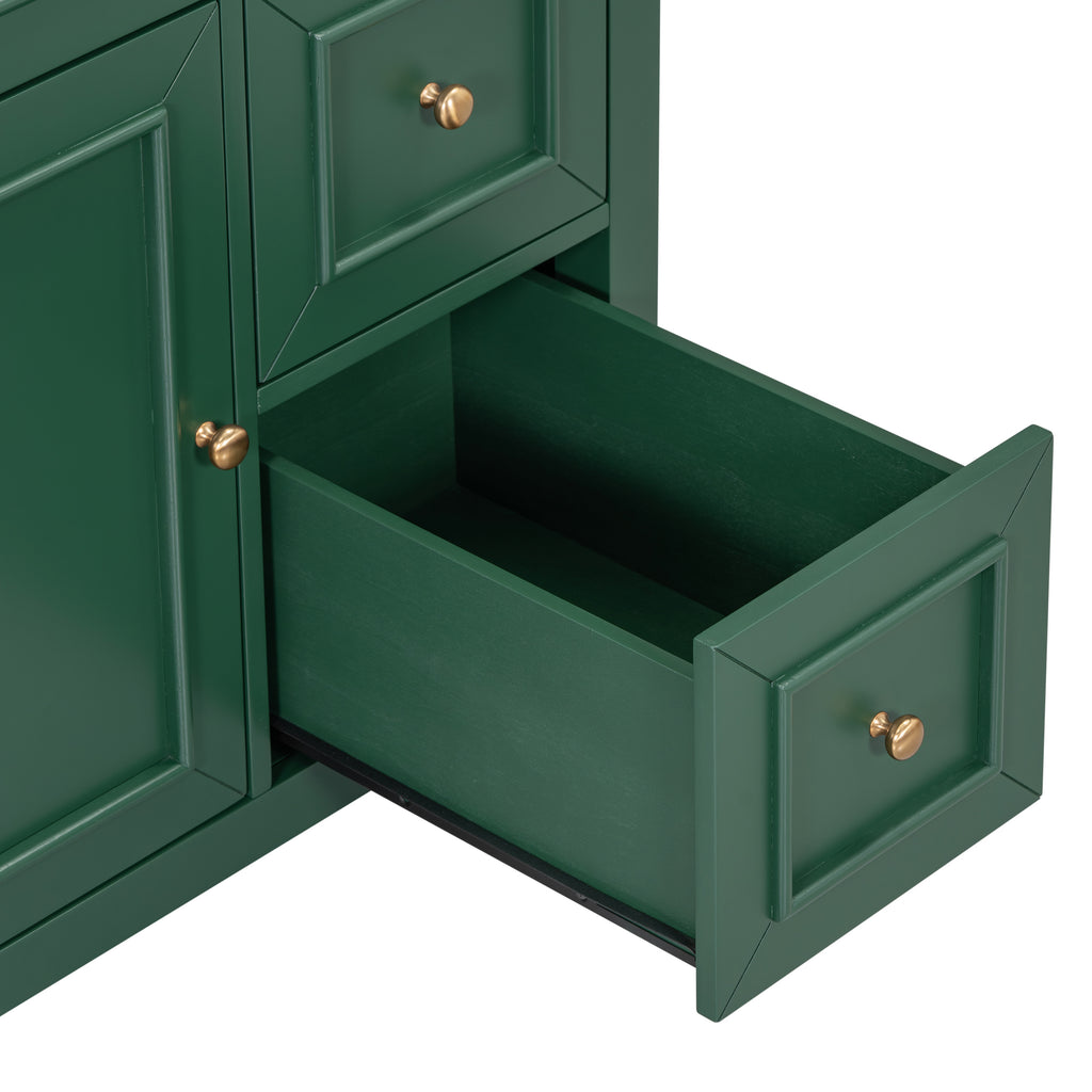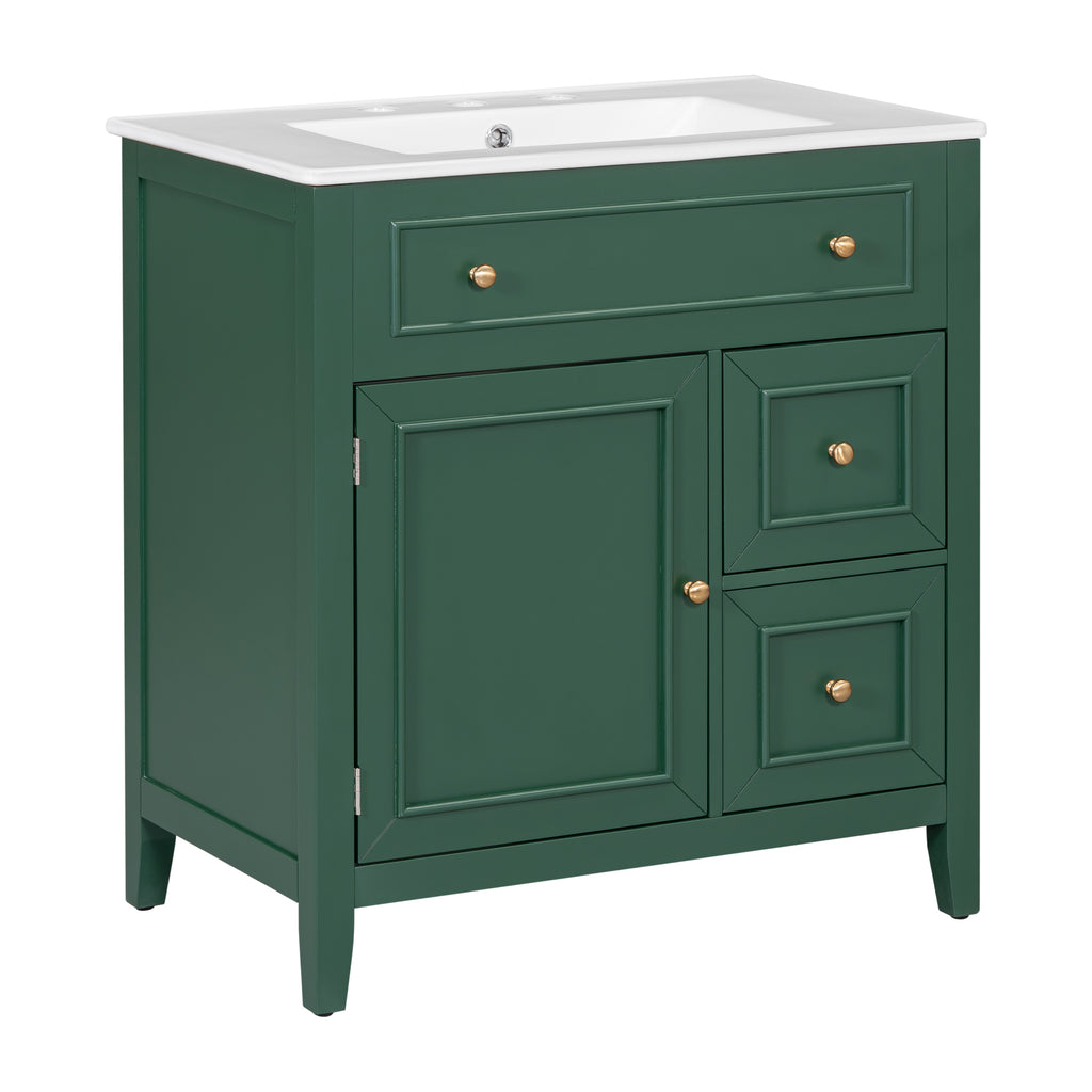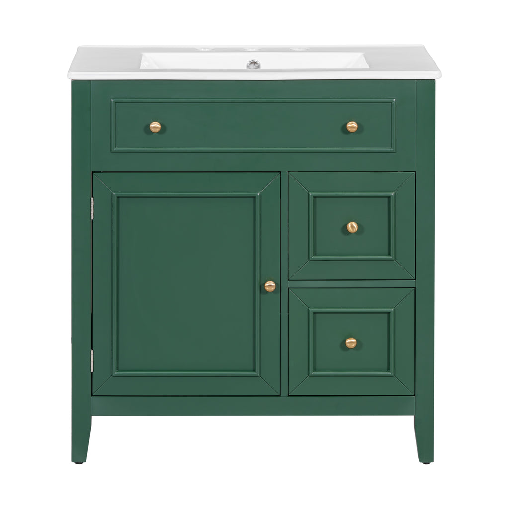 - Design & Detail: The raised line design on this vanity cabinet increases elegance to your room. Gold round knobs, stainless steel door hinges and slide rails comfort your daily using experience.