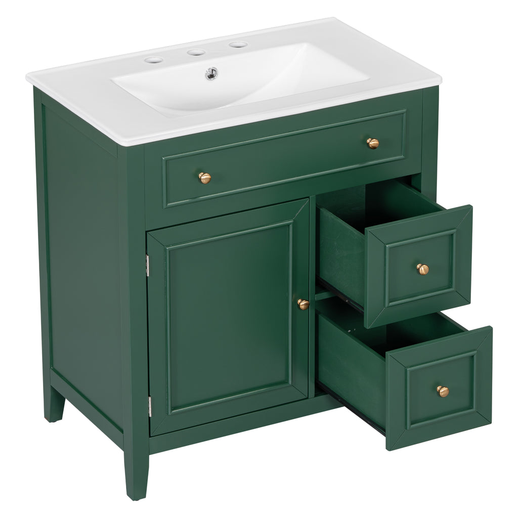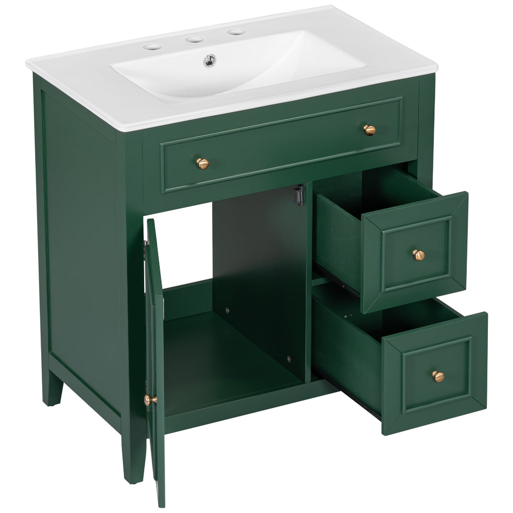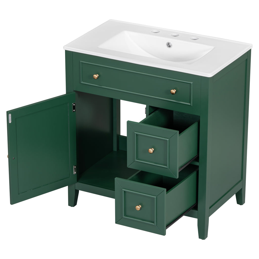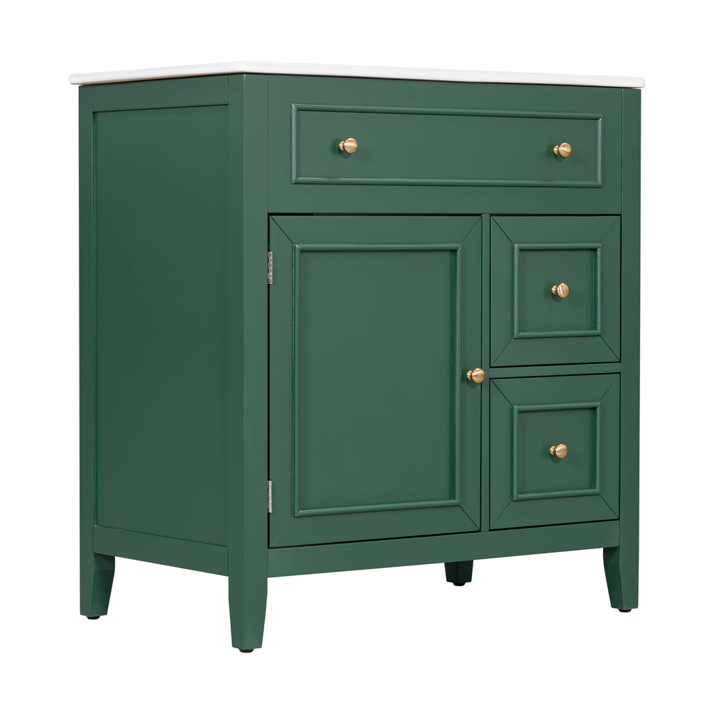 - Design & Detail: The raised line design on this vanity cabinet increases elegance to your room. Gold round knobs, stainless steel door hinges and slide rails comfort your daily using experience.