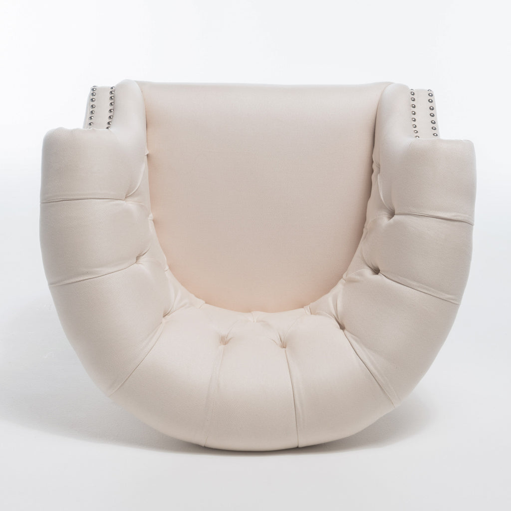 - This Club chair is a perfect addition to any room. The high Back and body of the chair provide long lasting comfort and adds an Air of class all its own. This chair, with its Tufted Back and studded arms, Brings Back a sense of importance and high honor to any person sitting in it, making it the King of chairs in your home. Enjoy your throne and the grace it will Bring to your home.