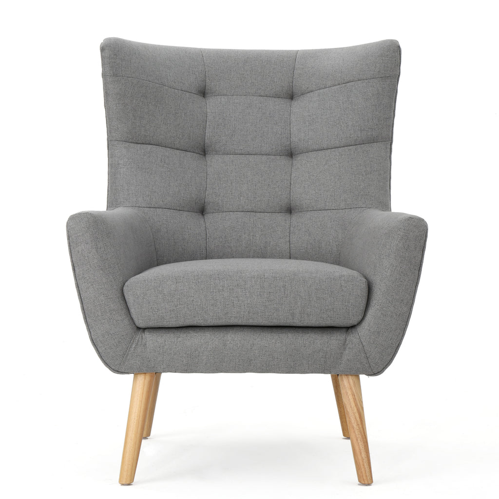 - This handsome club chair will make an excellent addition to your living room. It could also be used for seating in a large bedroom. Featuring rubberwood legs and a tufted back, its armrests make it comfortable enough to sit in for hours. Your guests are sure to give you compliments on it