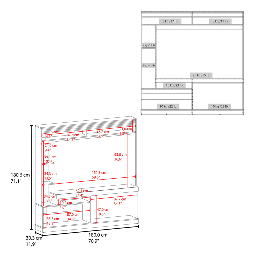 - Dimensions: 71,1' (H) x 70,9' (W) x 11,9' (D).'