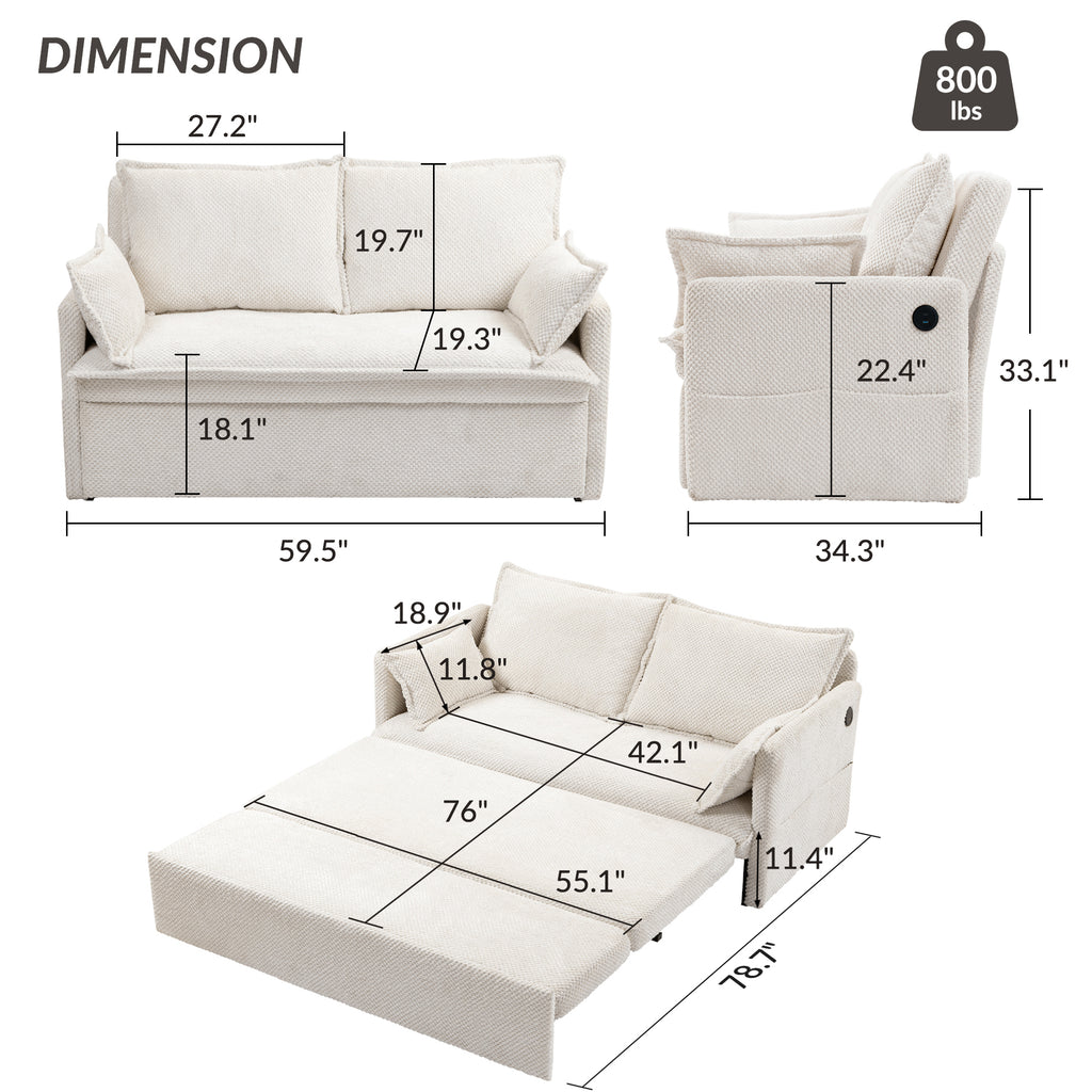 - 【2 in 1 Pull Out Couch Bed】This sofa bed offers dual use: a big comfy couch & sleeper sofa bed. Pull out the hidden bed frame under the couch to transform it into a 59.5inch sofabed. The roller slides smoothly for easy use. The strong construction and stabilizing legs ensure that the comfortable sofa bed can accommodate the weight of two adults. Capacity up to 800 pounds.