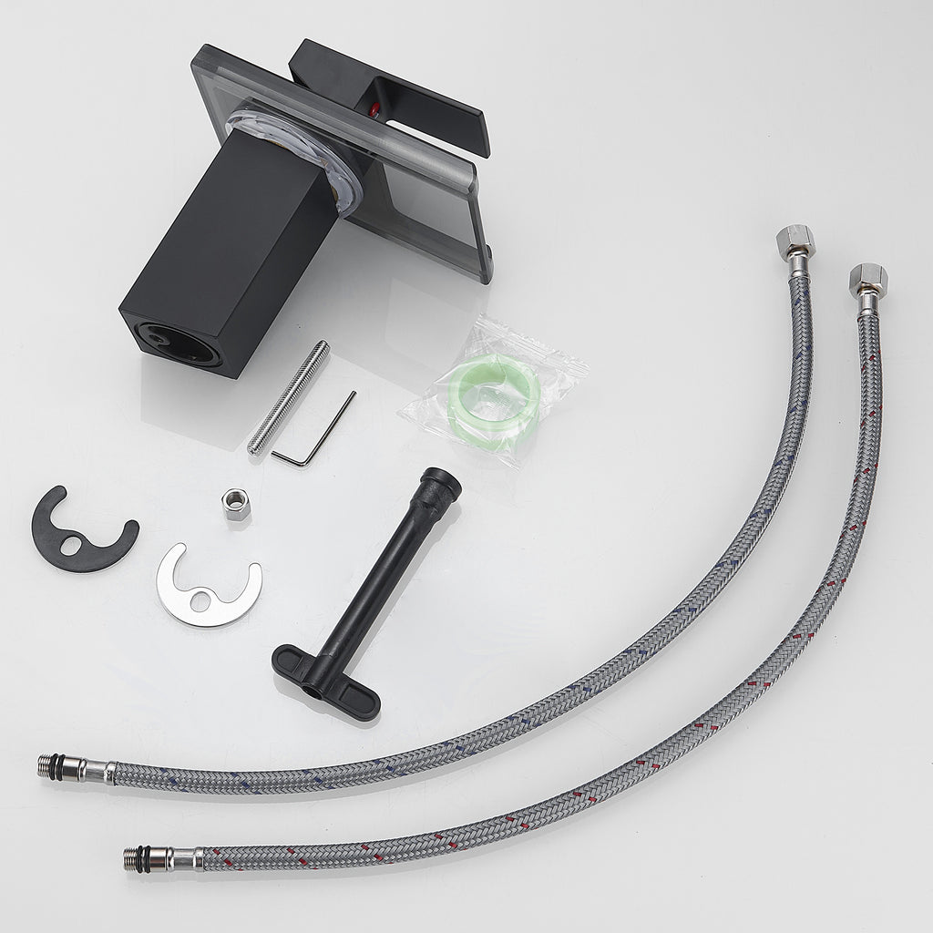Waterfall spout and built-in LED,changes its color by detecting the water temperature: ①Blue - cold water(0~30°C); ②Green - warm water(31~42°C), ③Red - hot water(43~52°C) ④ Extremely hot water-Red warning light flashes on and off to avoid scalding
