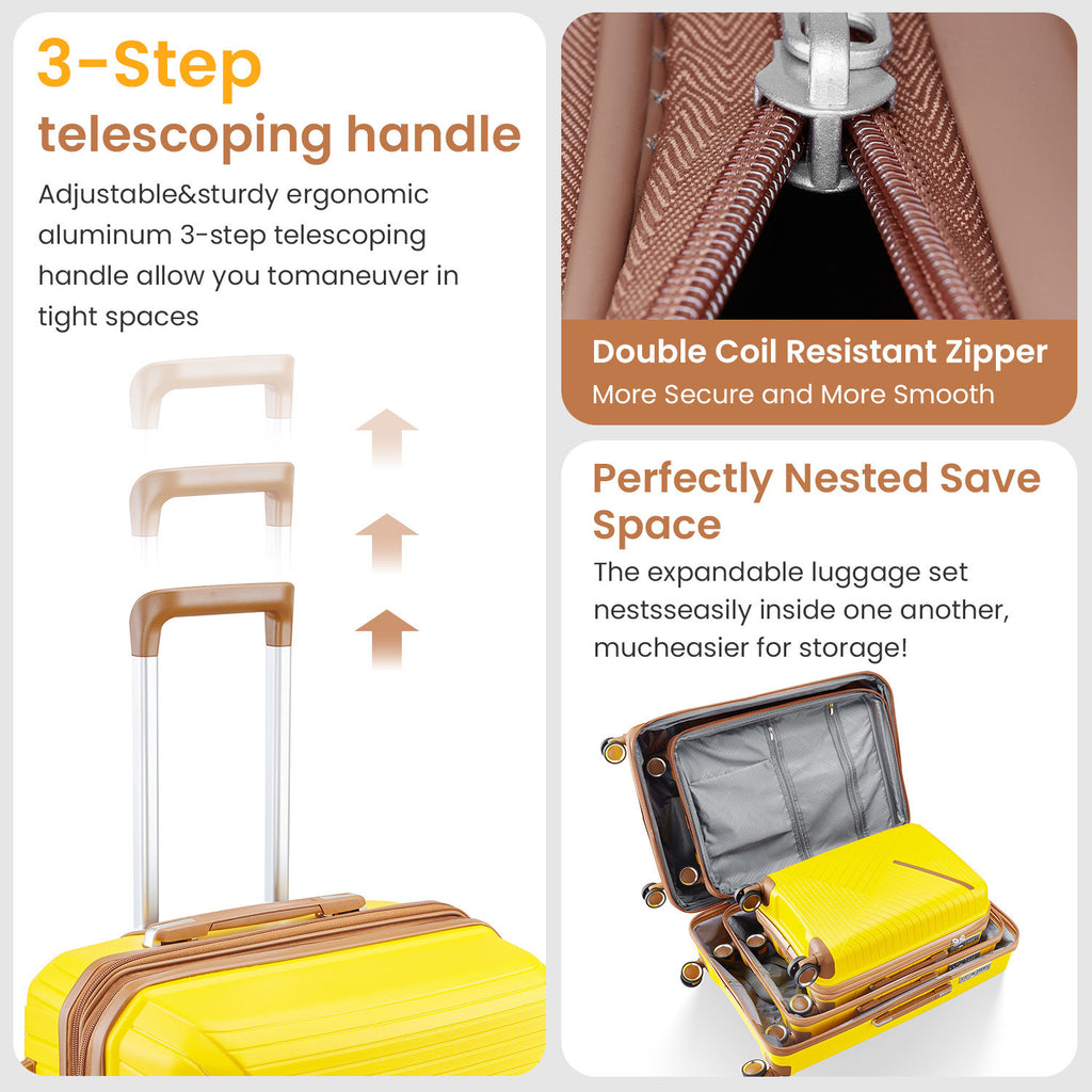 - Lightweight & Durable: This family luggage is made of strong waterproof PP exterior and black lined interior, which is easy to clean and long-term use. In addition, it is light in weight and easy to carry. Four molded side feet keep the luggage upright even when standing on its side.