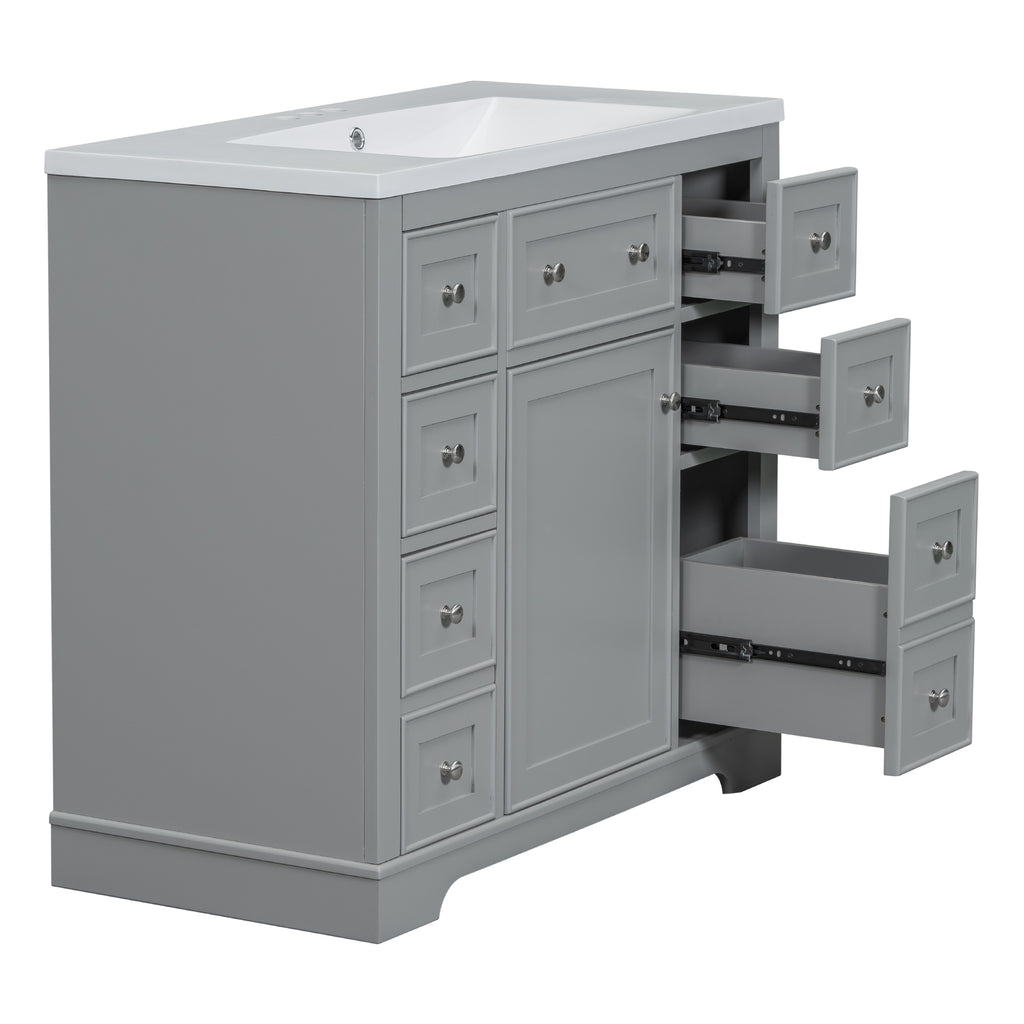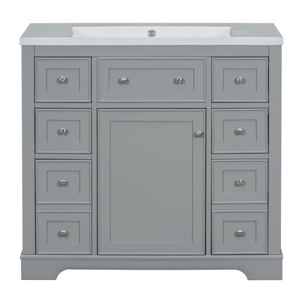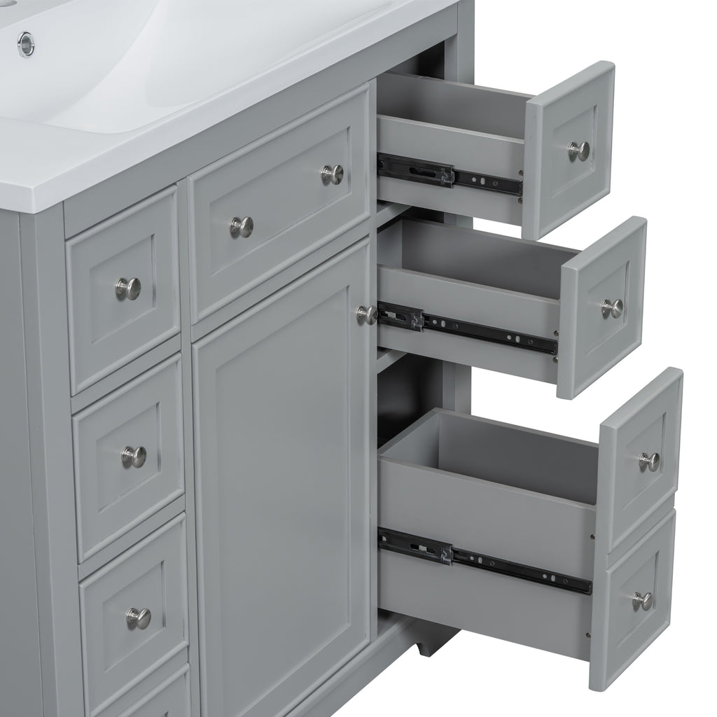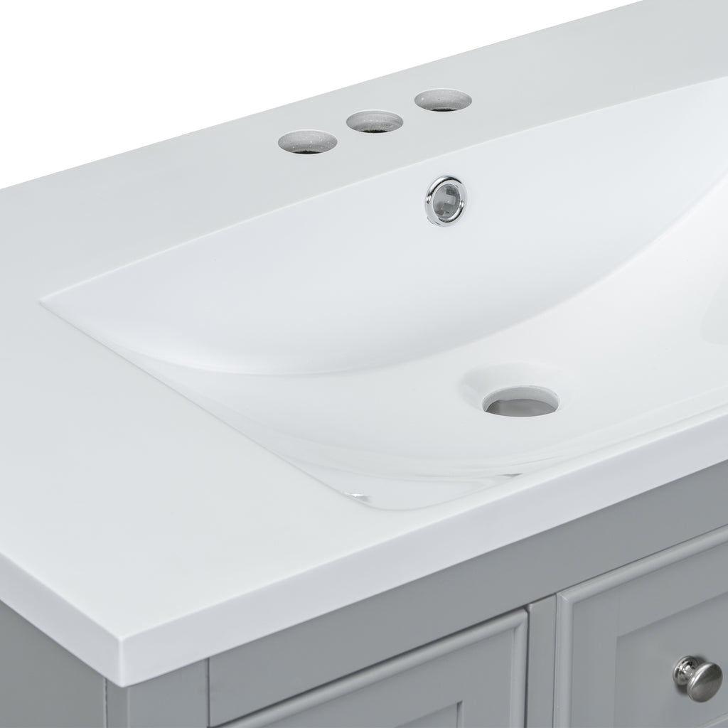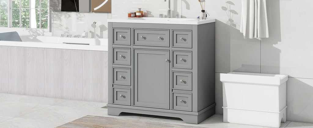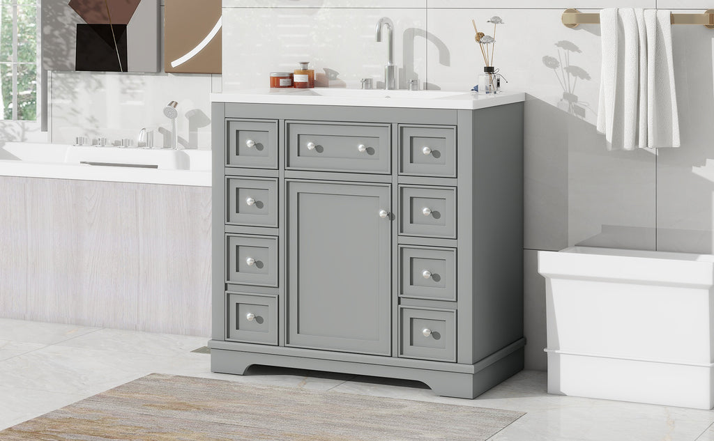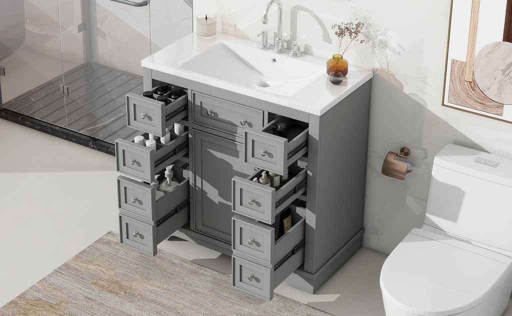 - Assembly Required - This bathroom vanity, needs assembly, has two packs, one for the sink and the other for the cabinet. All the hardware(screws, metal door hinges and handles, drawer slides, anti-toppling device etc.) and instruction manual are provided.