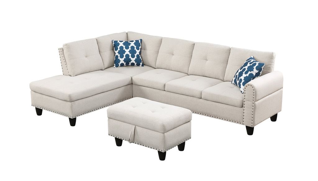 - Foam-filled cushions give you plenty of support. Rounded arms, nailhead trim, and subtle tufting in the back add a traditional feel we love. A storage ottoman and two toss pillows are also included