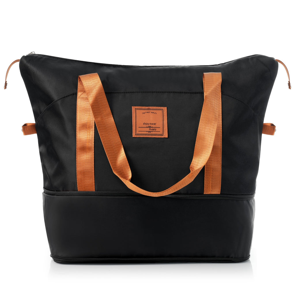 - Expandable weekender travel bag: Made of polyester fabric, the bags are mild water-repellent with multiple pockets for organization.