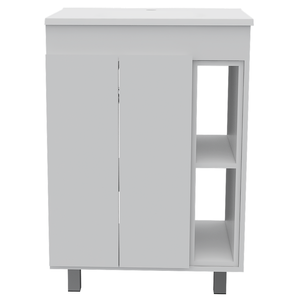 - Open cubby display space for décor and storage