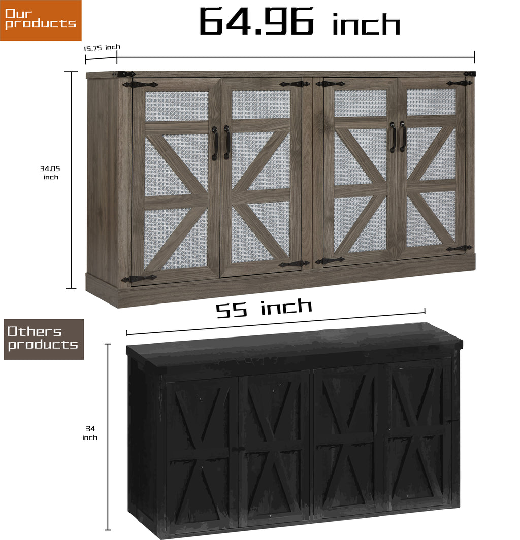 - VINTAGE & NATURAL: Featuring handmade barn doors and a modern style, the design-filled lines and classic slate gray color give this sideboard an elegant look, making it the perfect choice to match with other furniture. Unlike traditional hand-woven rattan, this product uses faux rattan technology to give it an aesthetic appearance, while the product is more durable and environmentally friendly.