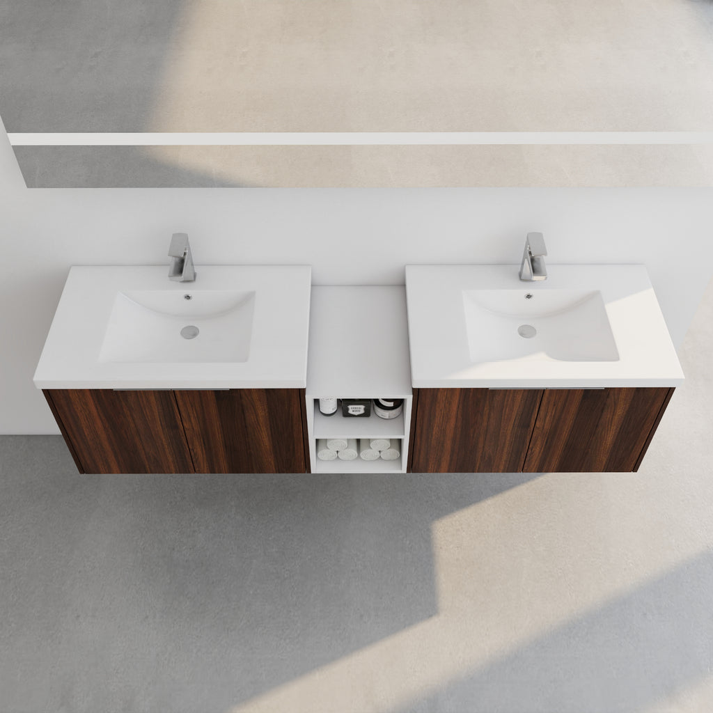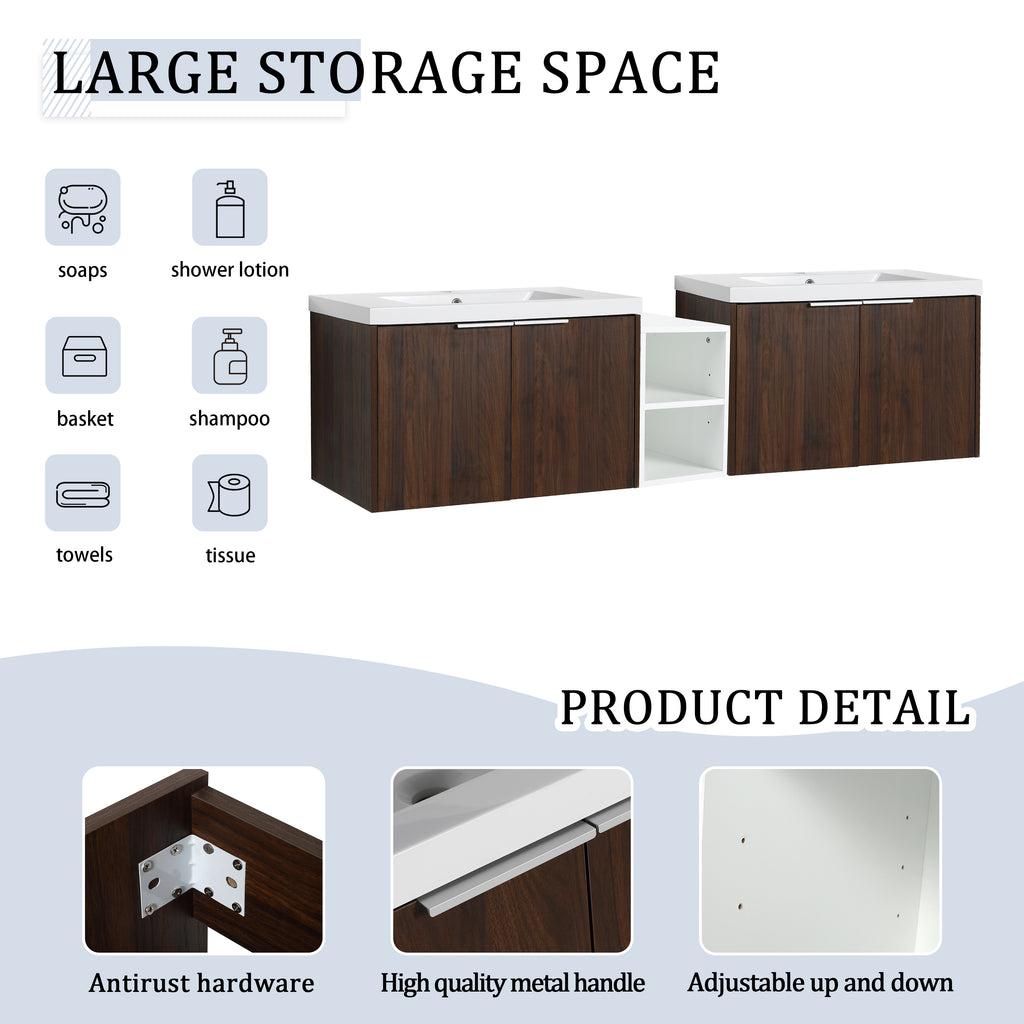 | Package includes | - 2x Vanity Cabinet; - 1x Small Storage Shelves;- 2x Resin Sink;- 4x Metal Handle; Parts Package |