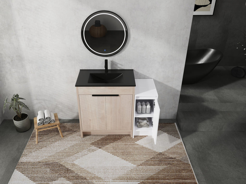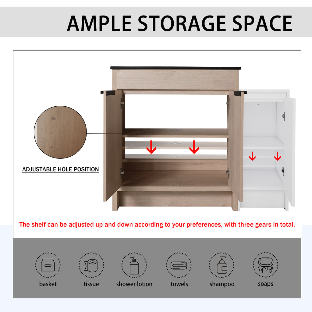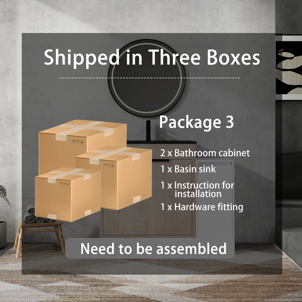 | Package includes | -1x Vanity Cabinet; -1x Black Ceramic Basin; -1x Storage Cabinets; -2x Metal Handle; Parts Package |