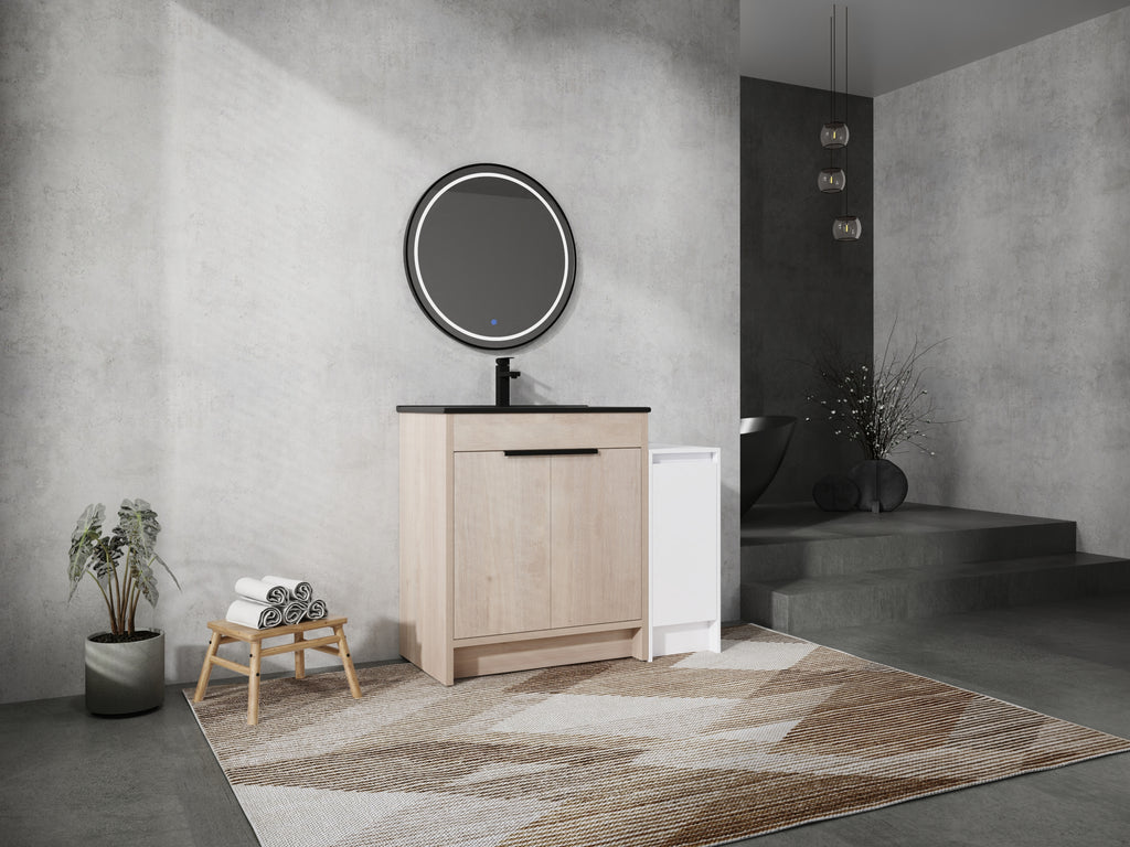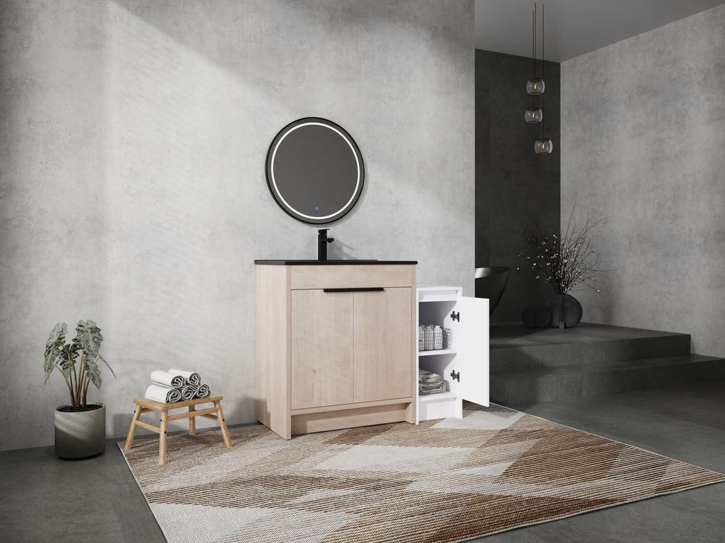 - Bring luxury to your bathroom with our contemporary bathroom vanity. Store all your essentials with ease in the ample bottom storage.