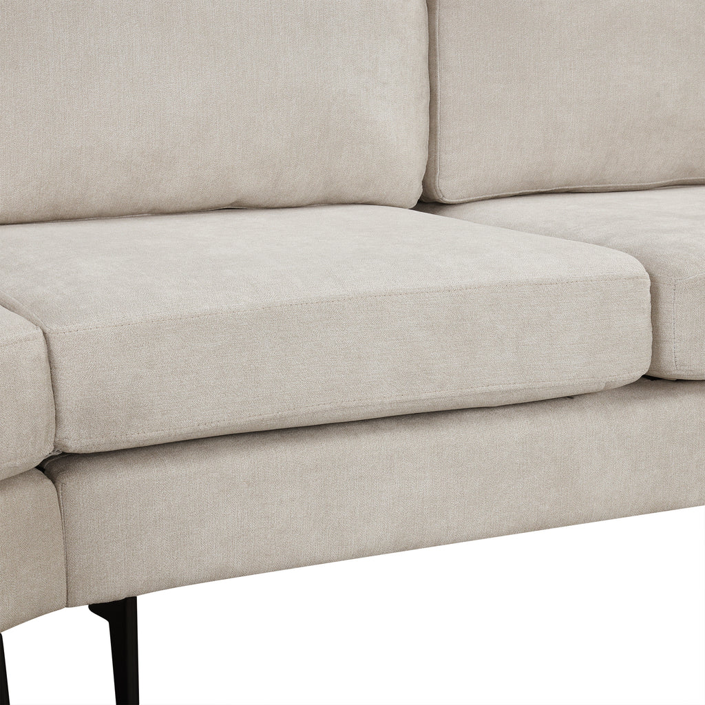 The 3-seater sofa features sleek metal legs, which not only provide sturdy support but also add a modern, sophisticated touch to the overall design. The metal legs elevate the sofa, giving it a more airy and spacious feel, while also ensuring durability and longevity.