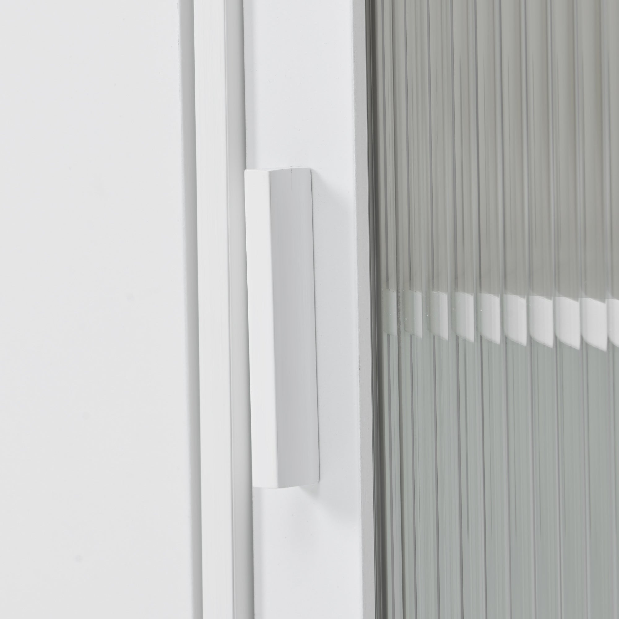 - [Sliding Glass Door & LED Light Design] Our rolling kitchen cart use 2 sliding glass door. Because of the fluted glass surface, it will refract different light and finally show a foggy effect. A foggy glass surface with warm yellow LED lights inside adds a hazy aesthetic feeling to improve your kitchen taste.