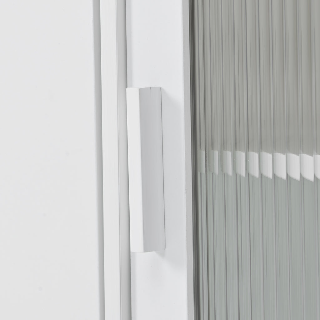 The sliding glass door effectively partitions the storage cabinet, providing a seamless integration of both open and closed storage spaces. This concealed sliding glass door with light boasts an exquisite aesthetic appeal that surpasses that of a conventional barn door, perfectly complementing your chosen decor style. Please note that artificial damage during the use or installation of tempered glass doors will not be considered a product quality issue.