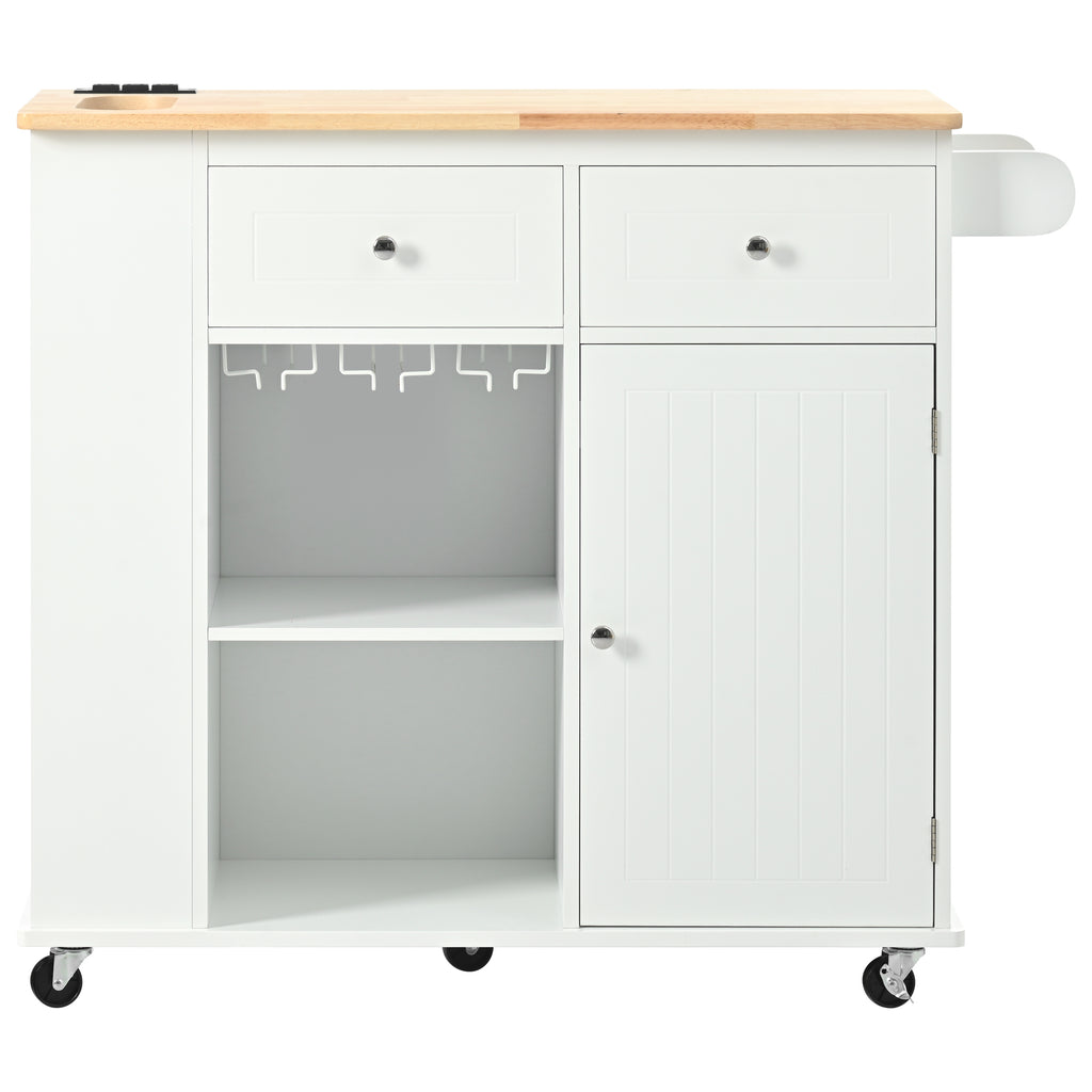 Kitchen Cart with Power Outlet,Drop Leaf,with Open Storage and Wine Rack
