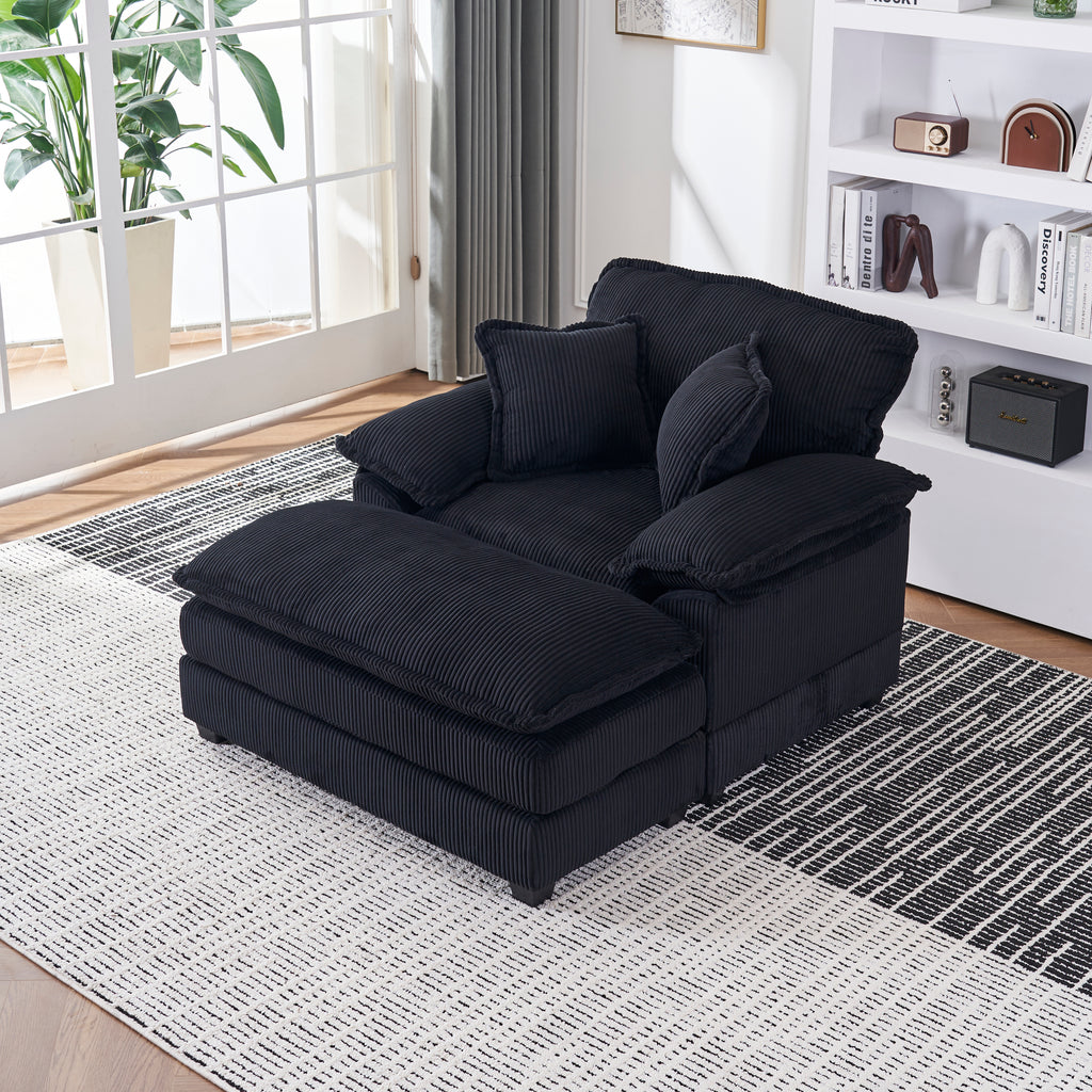 - Equipped 2 toss pillows provide both extra support for your waist back and more comfort for you Upholstered with soft corduroy in a neutral hue for an inviting look, this set will provide you with unrivaled comfort. High resilience sponge cushioning reinforced with spring package will support your body when seated, and easily restore their shape