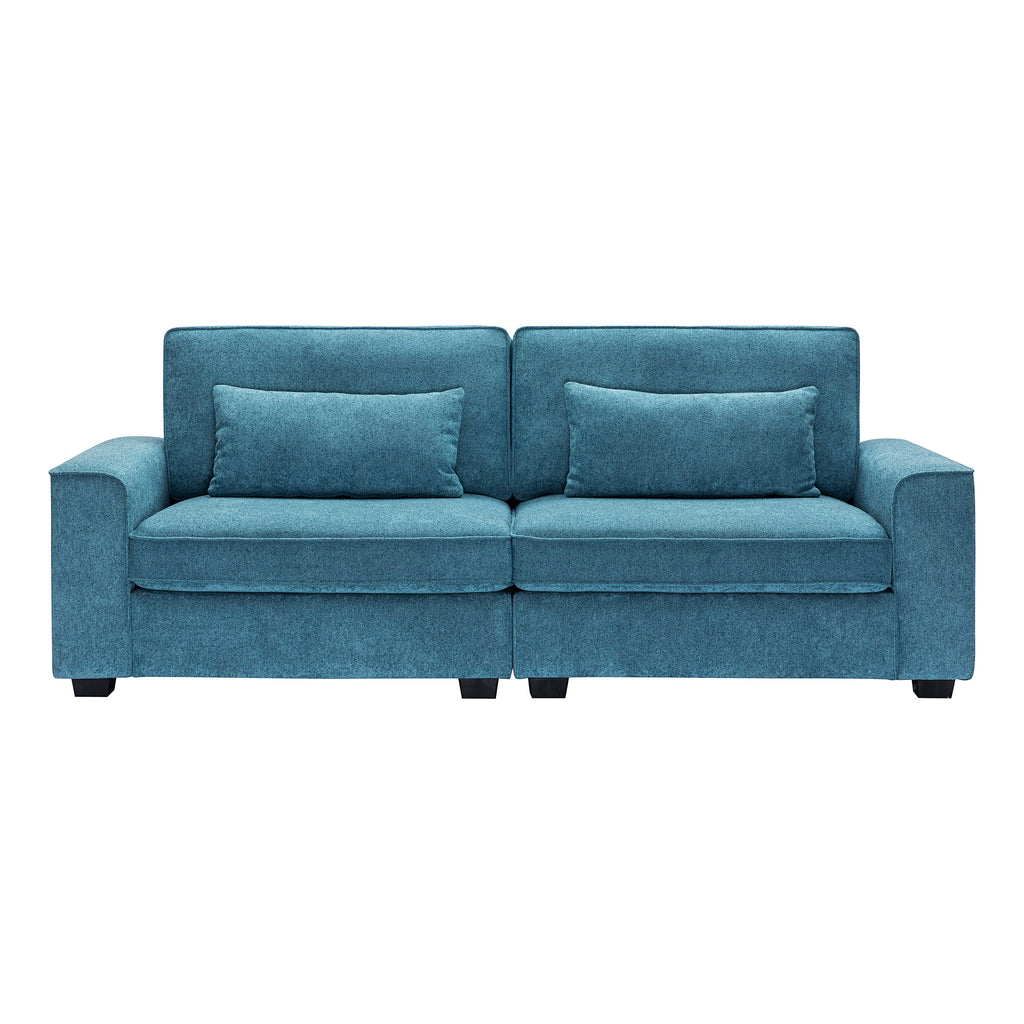- Plush, generously cushioned seats and backrests provide the ultimate comfort, inviting you to unwind. The soft fabric upholstery is complemented by matching accent pillows, creating a luxurious yet casual vibe. Whether you’re hosting friends or enjoying a quiet evening, this sofa offers both style and relaxation.
