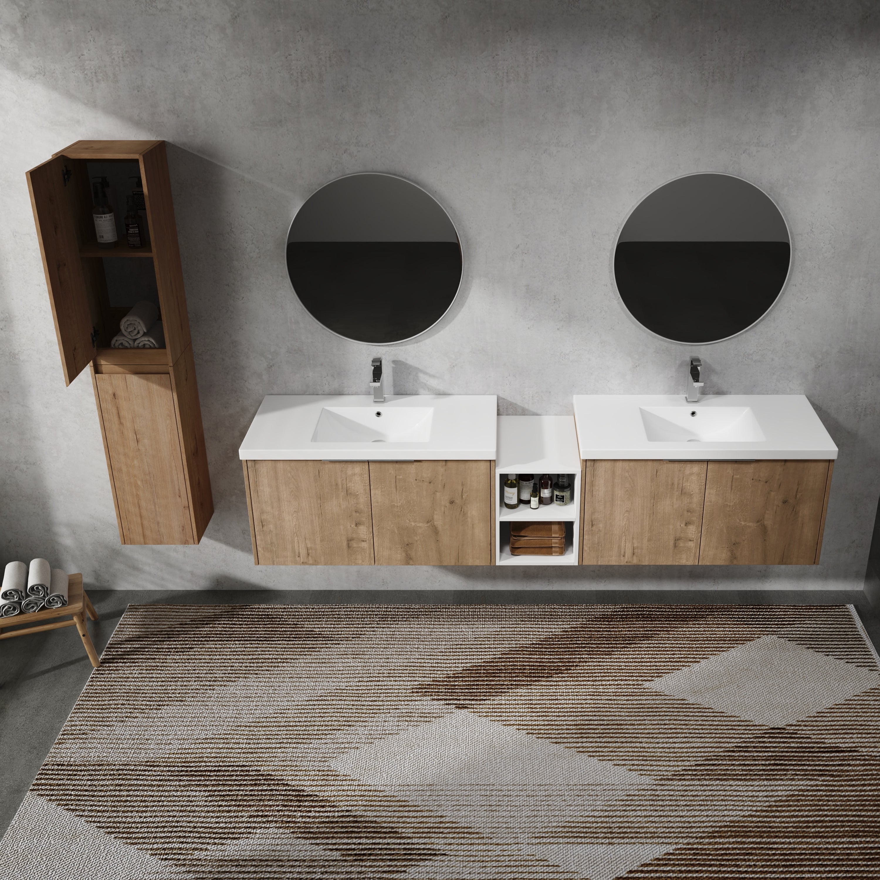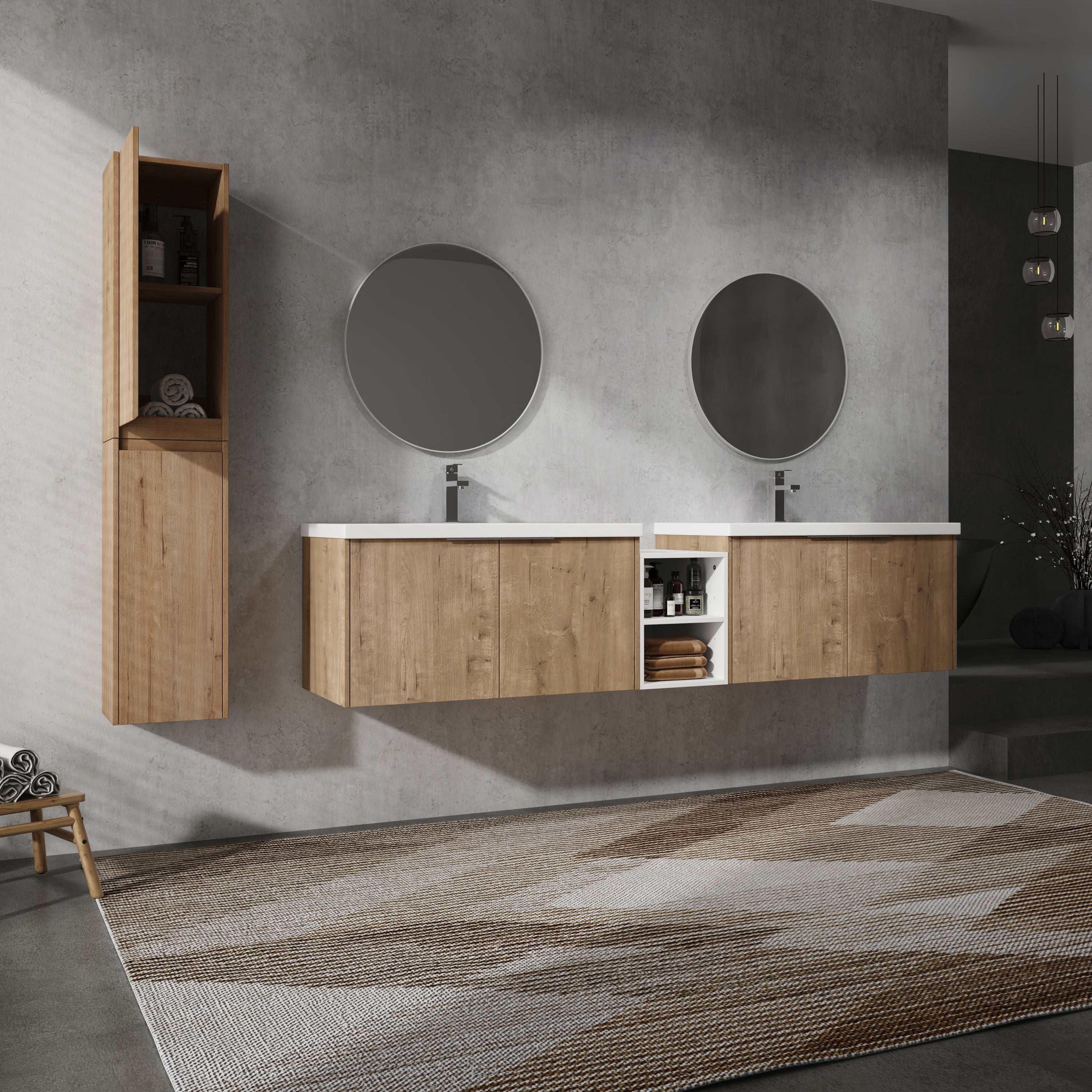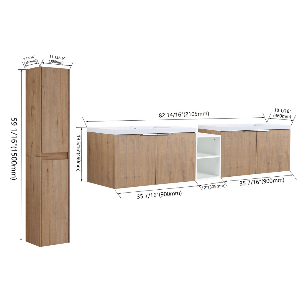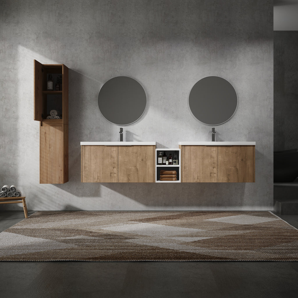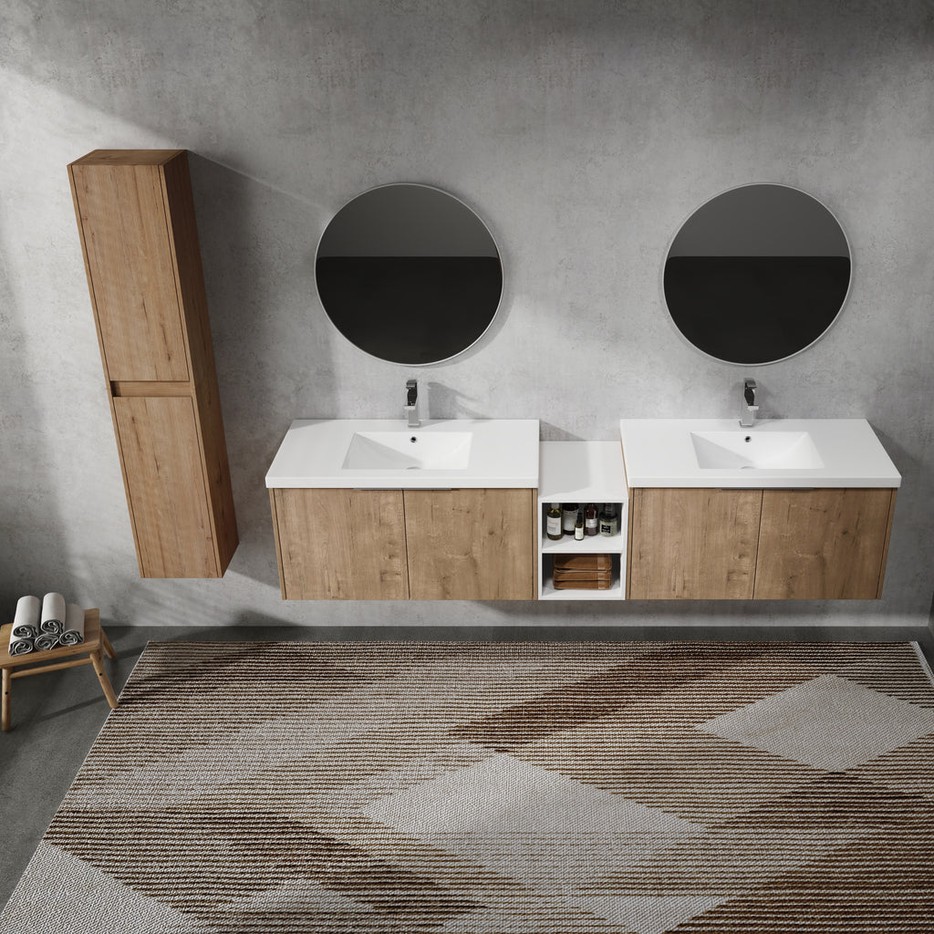 | Package includes: | - 2x Vanity Cabinet;- 2x Side Cabinet;- 2x Resin Sink; - 1x Small Storage Shelves;- 4x Metal Handle; Parts Package |
