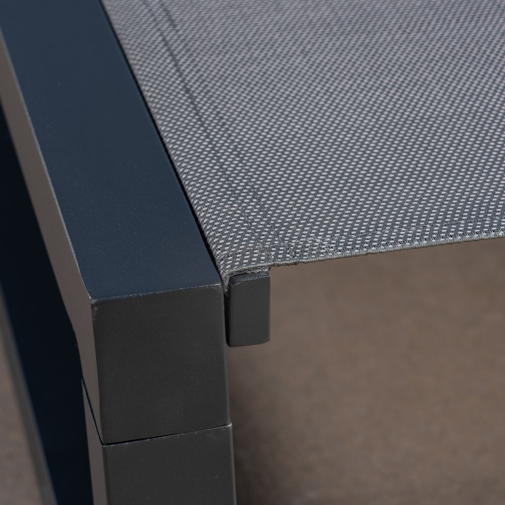 Made of aluminum and outdoor mesh Includes 2 chaise lounges