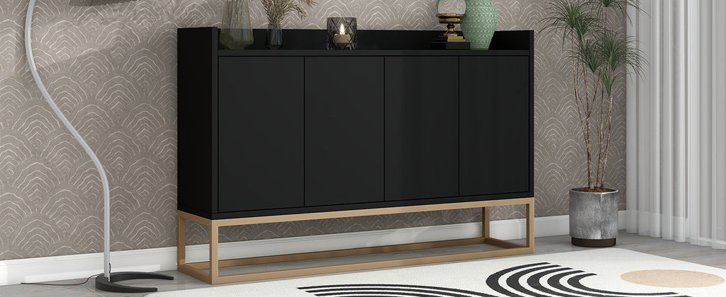 • This sideboard buffet cabinet features a black cabinet body with gold metal legs, compact look is very suitable for small space. Whole dimensions: 47.2'L x 11.8'W x 31.5'H.