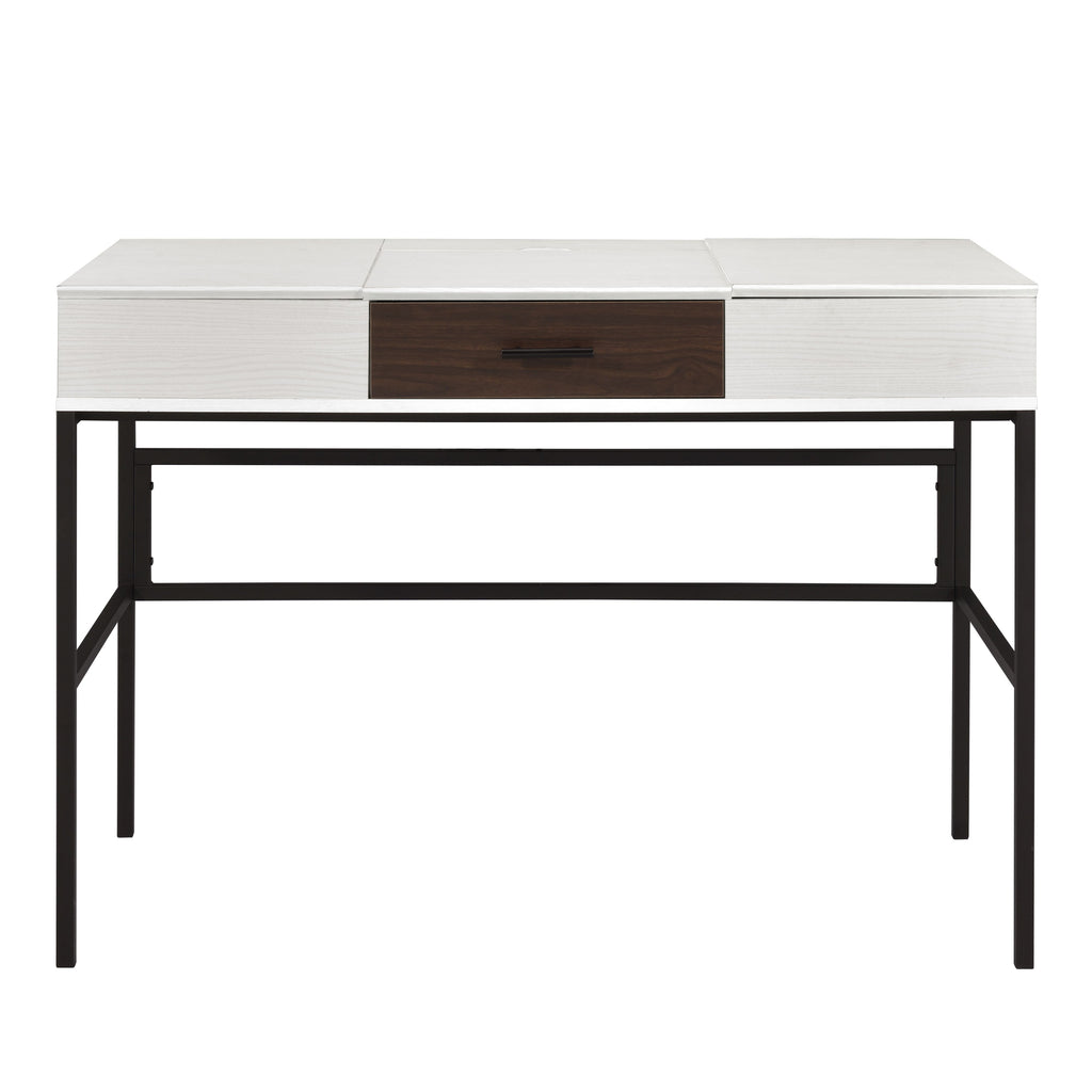 This functional desk includes a built-in USB port and plug, providing convenient charging for electronic devices, while featuring one storage drawer that offers ample space to keep essentials neatly out of sight. The drawer is equipped with a 3/4 extension glide for easy access to contents, utilizing durable side metal drawer glides that enhance functionality with their smooth sliding mechanism.