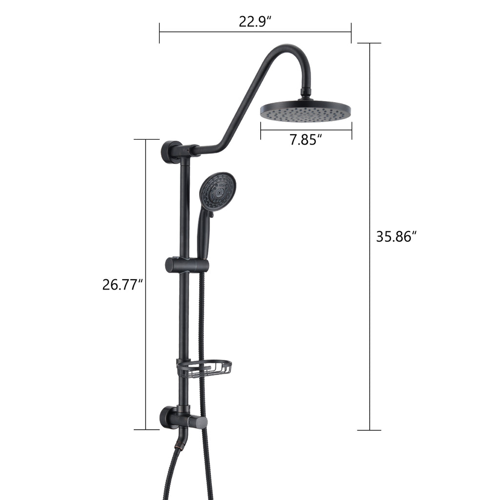 - The adjustable slide bar can control the height of the hand shower and brass soap dish, you can adjust the height and angle of the hand shower according to your height to get the best shower experience.