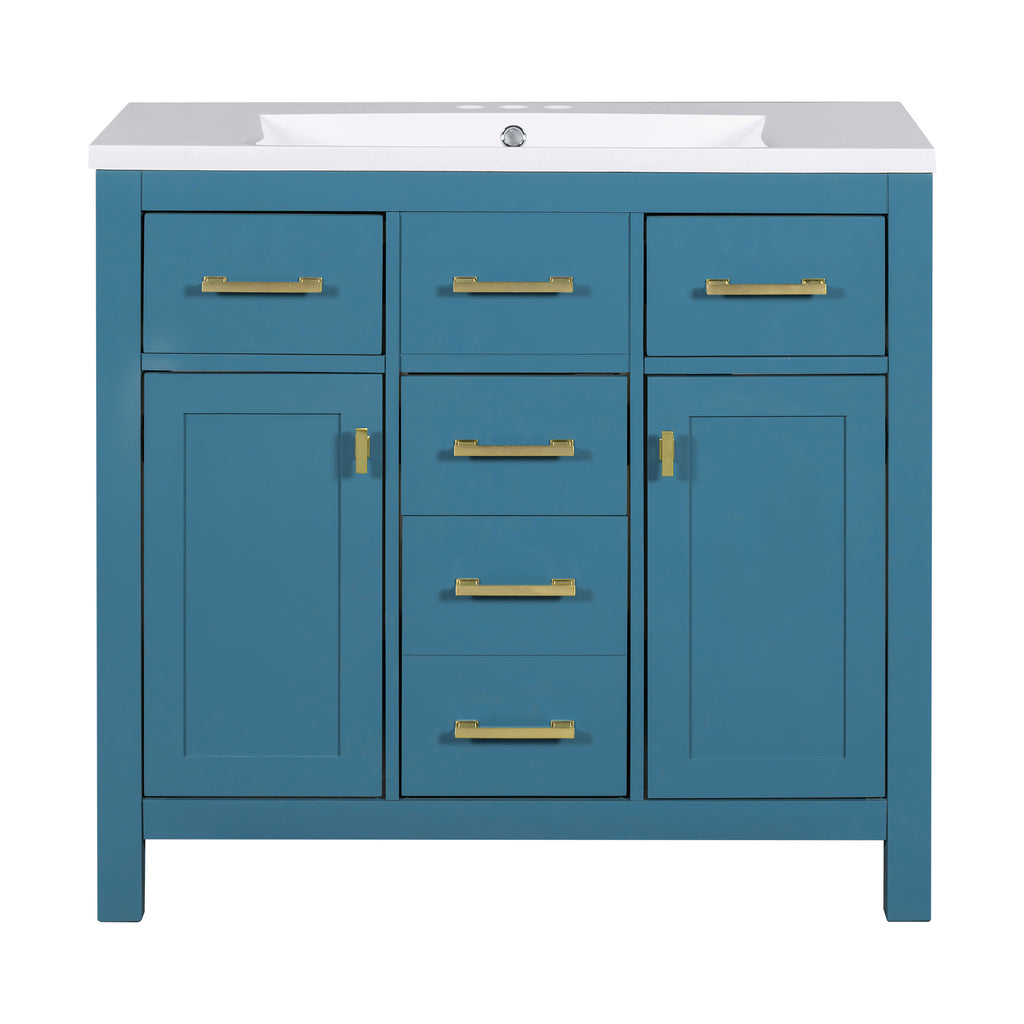 - [Modern Minimalist Style]This 36-inch bathroom vanity has a simple and clean design. The sink is made of resin and is easy to clean. The cabinet features a traditional shaker style design with a painted finish to bring a modern and luxurious look to your bathroom. Complements a variety of bathroom styles!