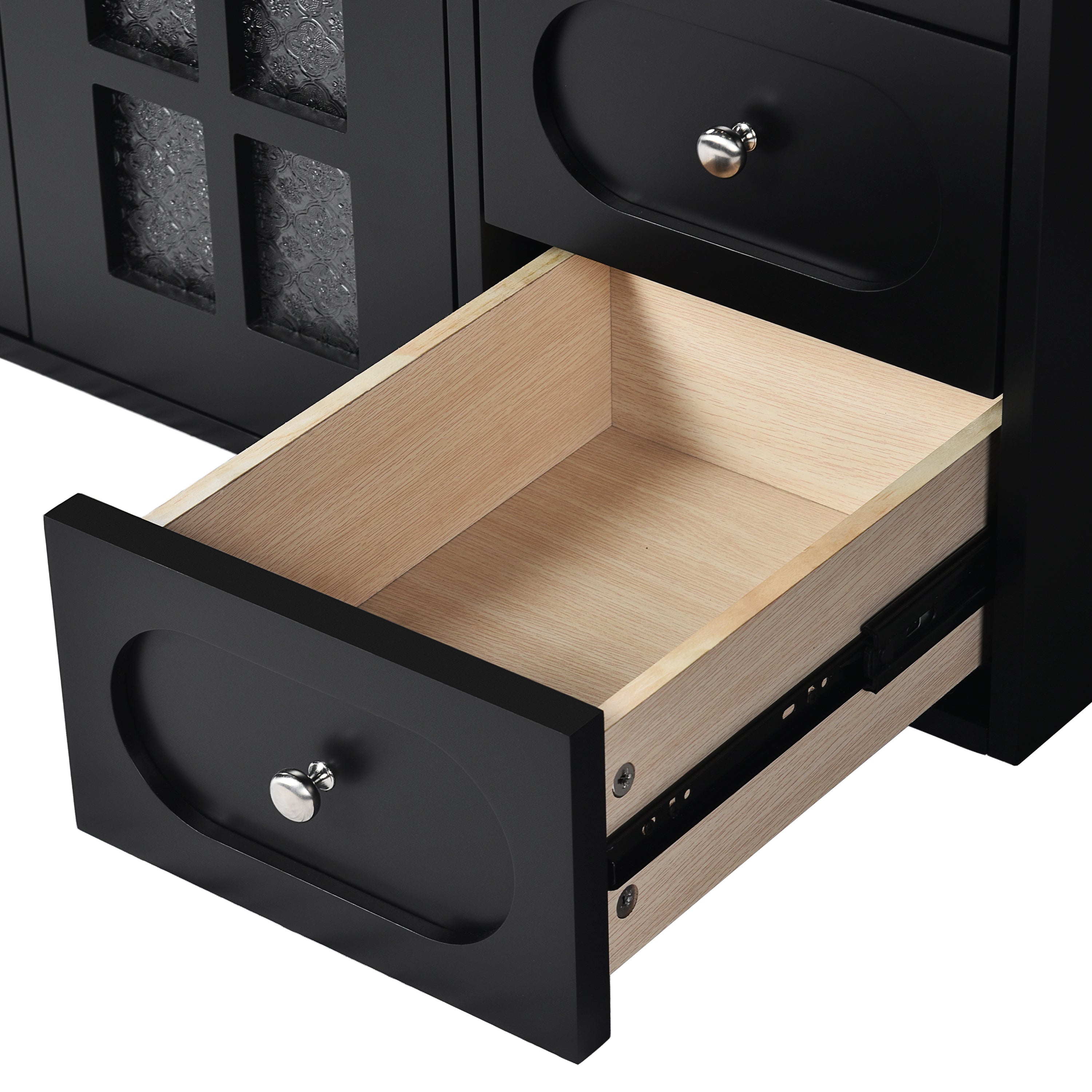 - [Modern and Elegant Style] Bathroom cabinets with translucent patterned glass are modern and elegant, creating an atmosphere of lightness and transparency while maintaining privacy. The pattern of translucent glass not only blocks the view, but also creates a soft effect when light passes through, adding a sense of layering and beauty to the space.