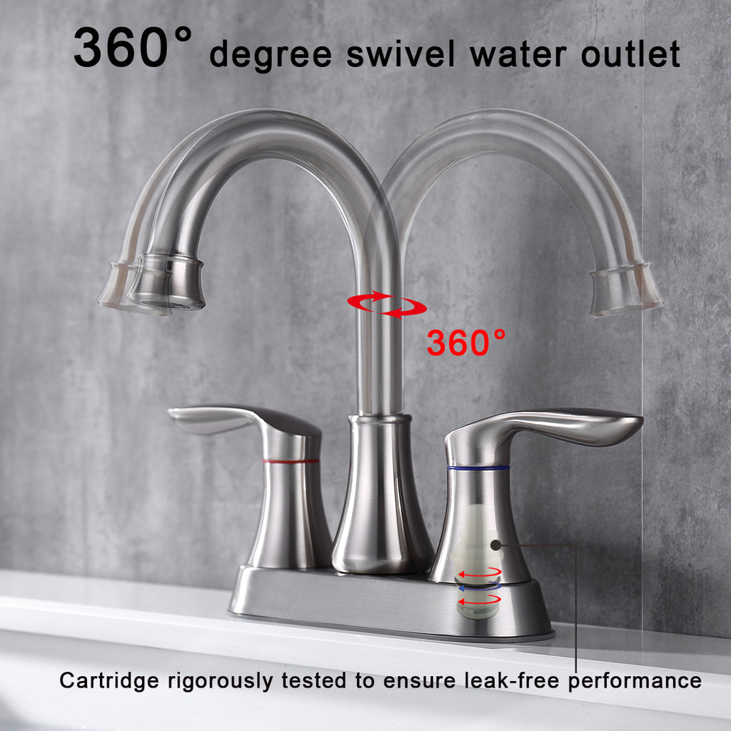 - 4. ACCESSORIES: Hot and cold flexible hoses(23.6 inch long) and pop up drain are included.360 degree swivel nozzle supply full range of washing for your bathroom sink.