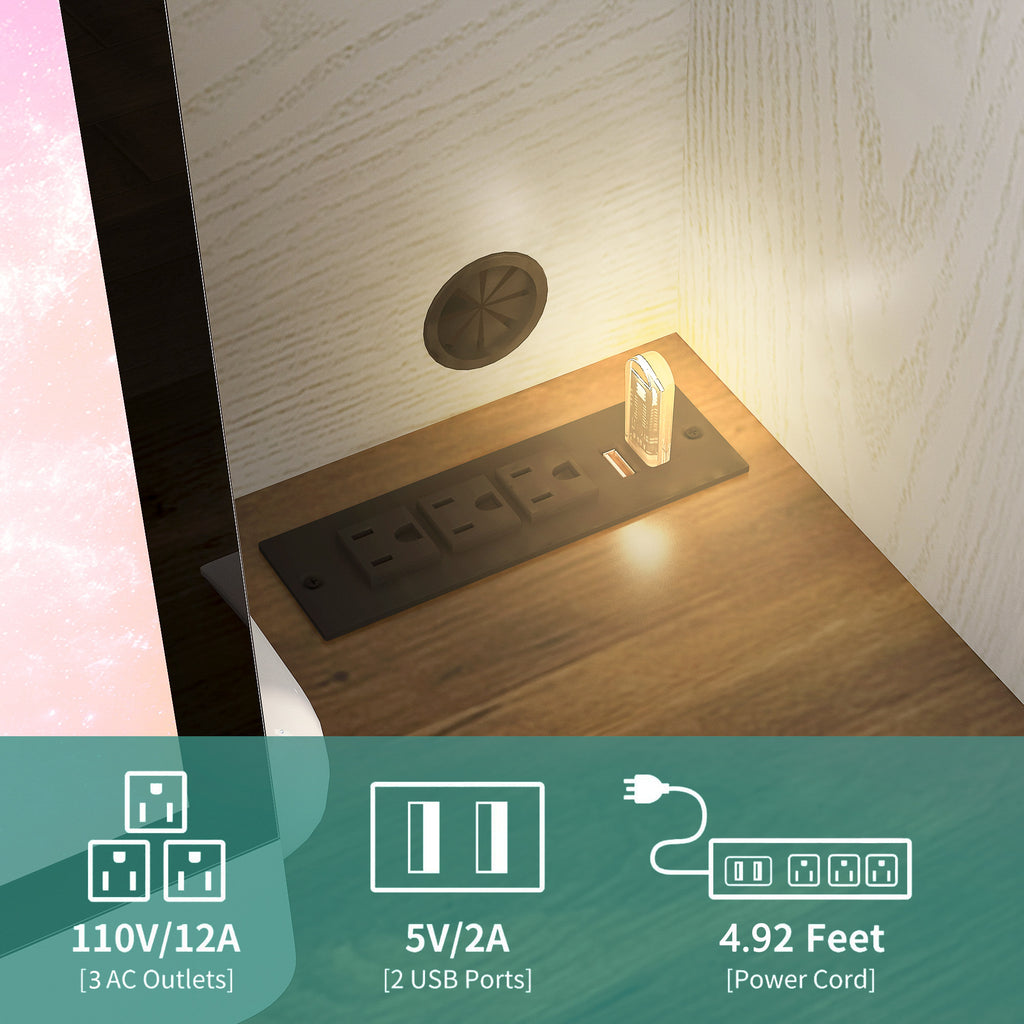 - This bedside table is equipped with 3 AC power sockets and 2 USB charging ports, allowing you to charge computers, mobile phones, desk lamps, etc. at the same time.