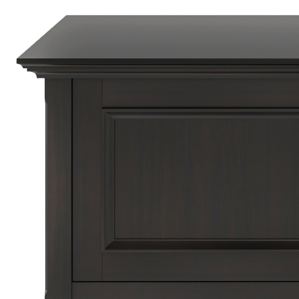 - Transitional design includes tapered legs, panel framed door fronts, and antique bronze round decorative knobs