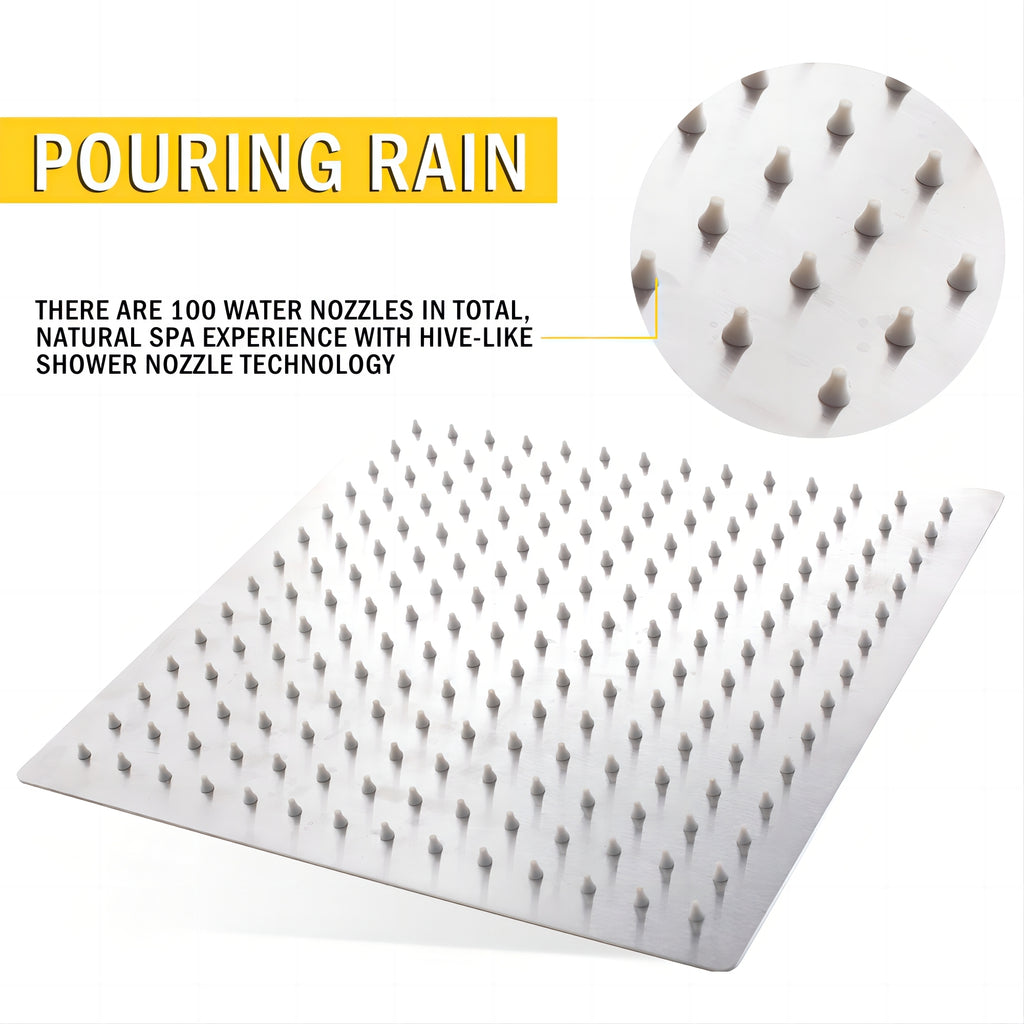 - 304 stainless steel casted shower head - 12 Inch Rainfall Shower Head Solid Square Ultra Thin 304 Stainless Steel, Waterfall Full Body Coverage with Silicone Nozzle