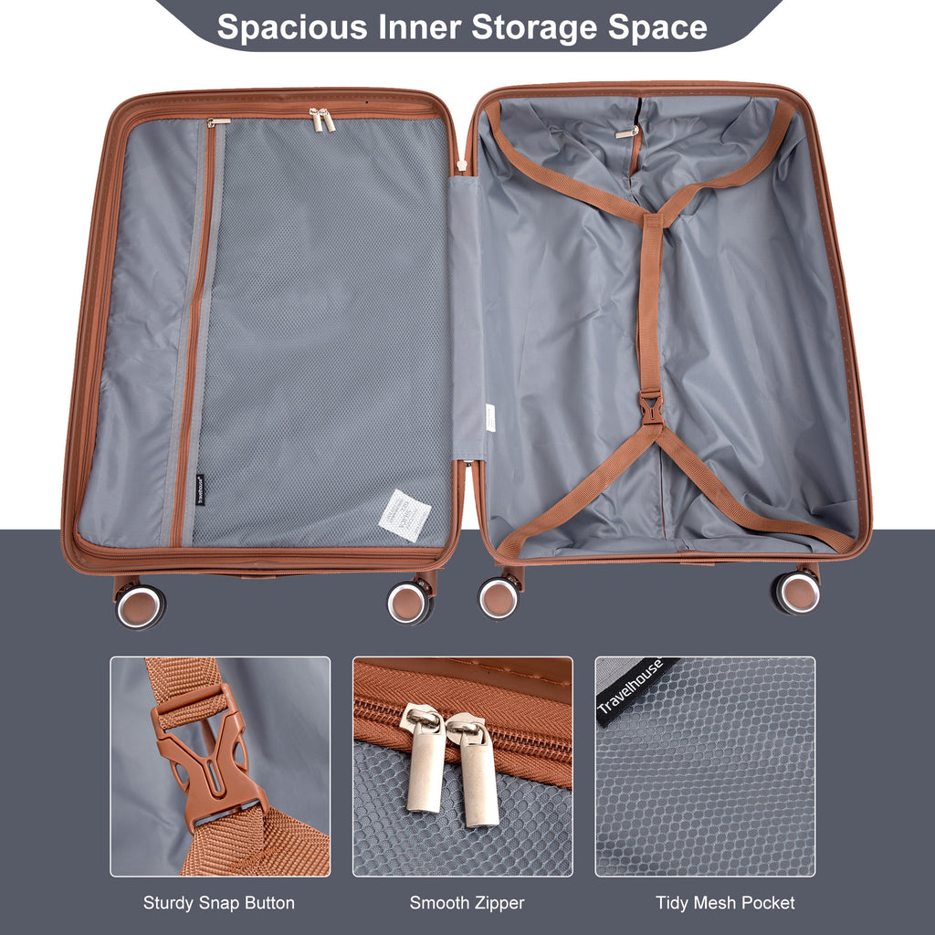 - 5 PIECE LUGGAGE SETS - The luggage set of 3 pieces offers 20' carry on luggage,24' medium checked luggage,28' large check-in suitcase, handbag, and storage bags, that can be nested together for easy storage.