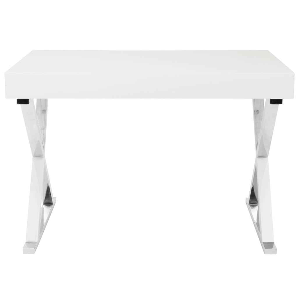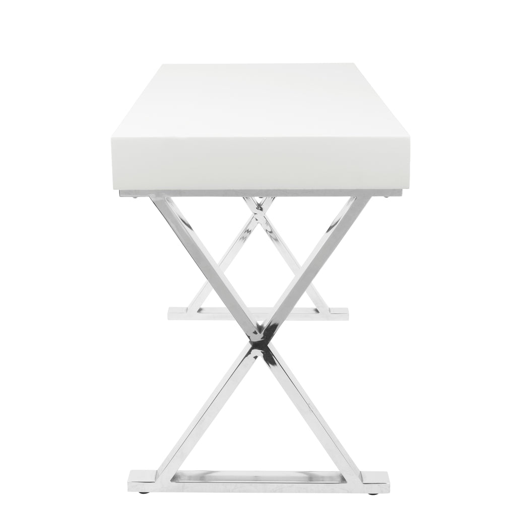 - Add glamour to your work space with the beautiful gloss finish of the Luster Desk. A thick desk top and pullout drawer provide an optimal work space, while supporting chrome-finished X-shaped legs add a truly stylish appeal. Available in various colors, choose the one that suits your space best!