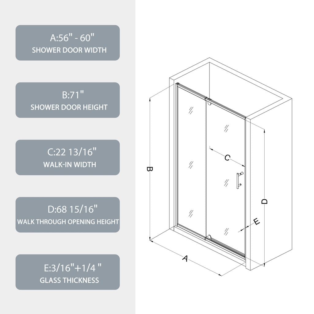 - The shower door covers 4 'size range, suitable for width 56-60'.