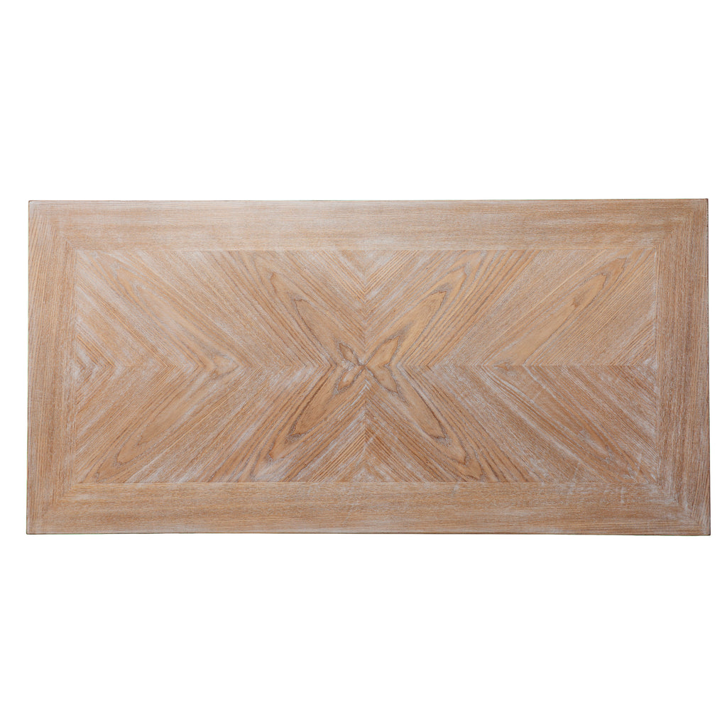 - The creamy white finish highlights the unique, trellis styled legs, while the natural desktop provides ample room to write or type