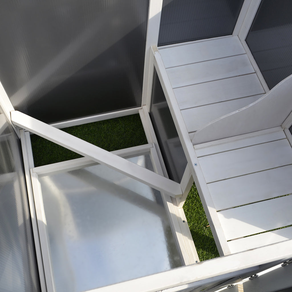 - Weatherproof Roofing: The polycarbonate panels roof provides reliable protection against the elements, keeping your chickens safe and dry in any weather.