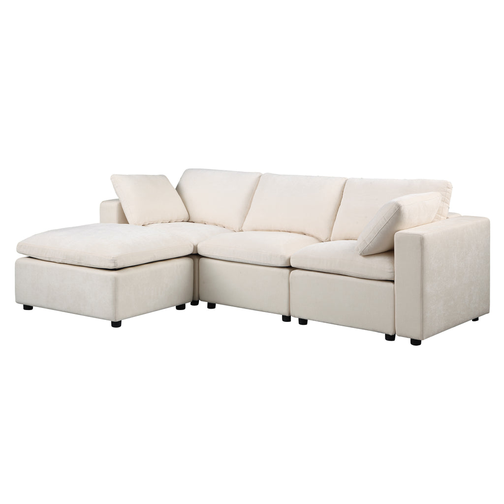 - Sofa set includes: 1 x 3-seat sofa, 1 x chaise lounge, 1 x storage ottoman, 7 x back cushions, 2 x throw pillows(pillows dimensions:12.6''Lx12.6''Wx5.1''D)